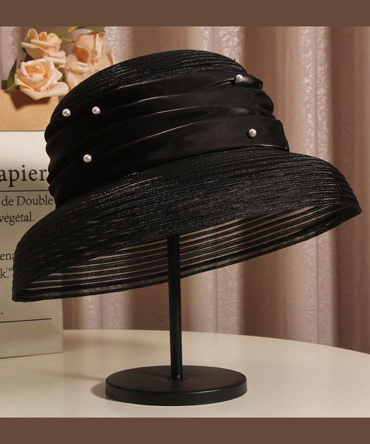 French Elegant Black Tulle Nail Bead Bucket Hat Summer