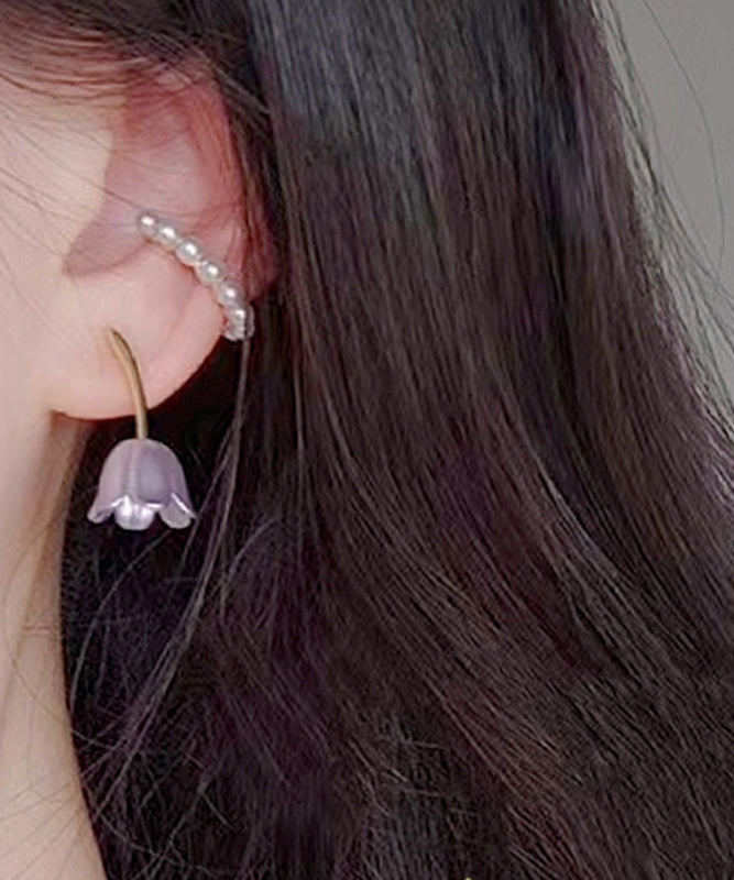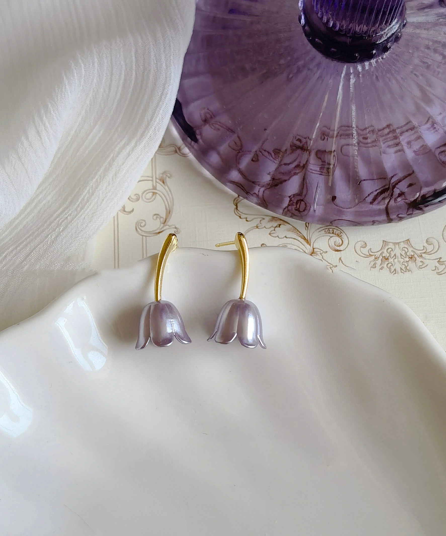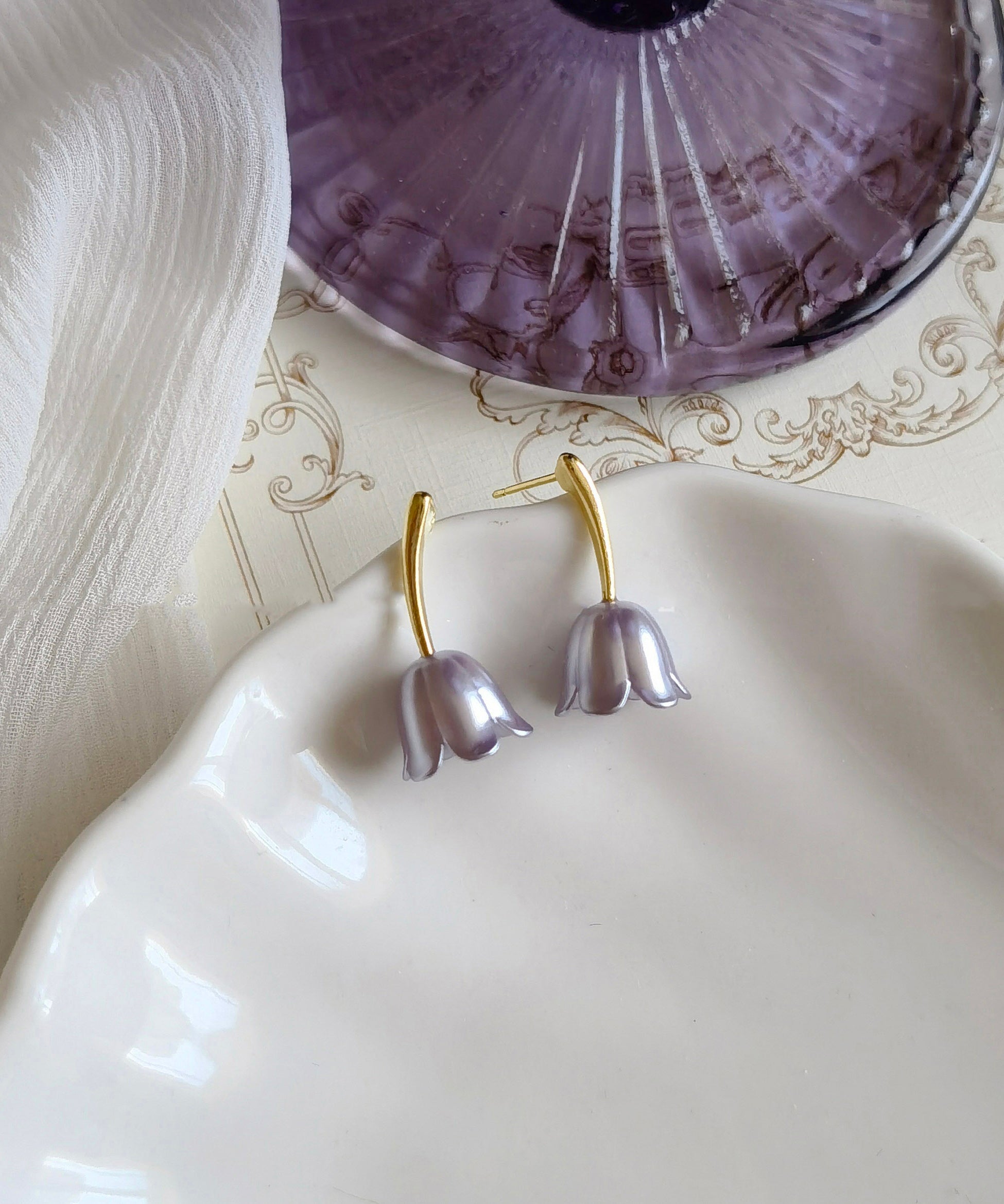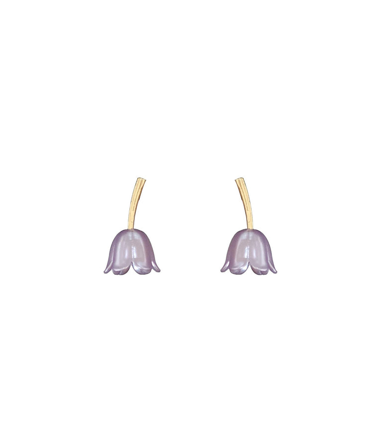 French Gold Copper Alloy Lily Of The Valley Stud Earrings