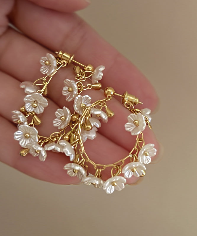 French Gold Copper Overgild Floral Tassel Hoop Earrings