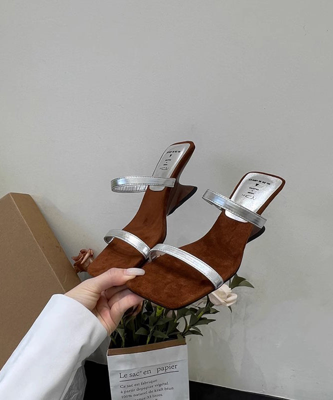 French Gold Wedge Heel Slide Sandals Peep Toe