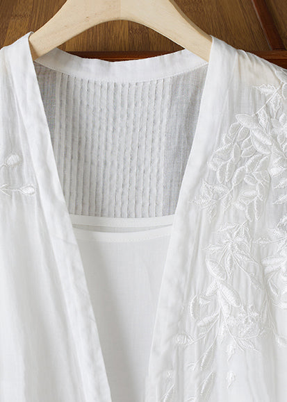 French Gradient Brown Embroidered Cotton Cardigan Summer