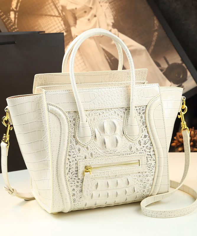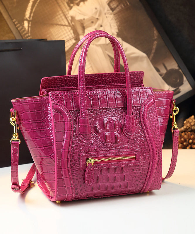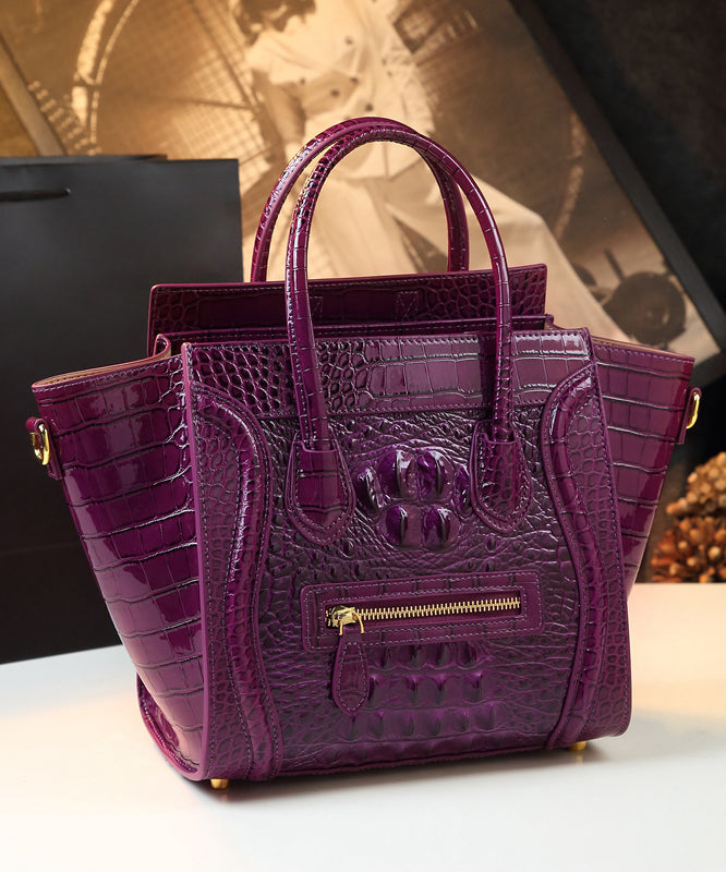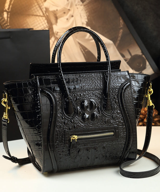 French Green Embossed Zippered Calf Leather Tote Handbag