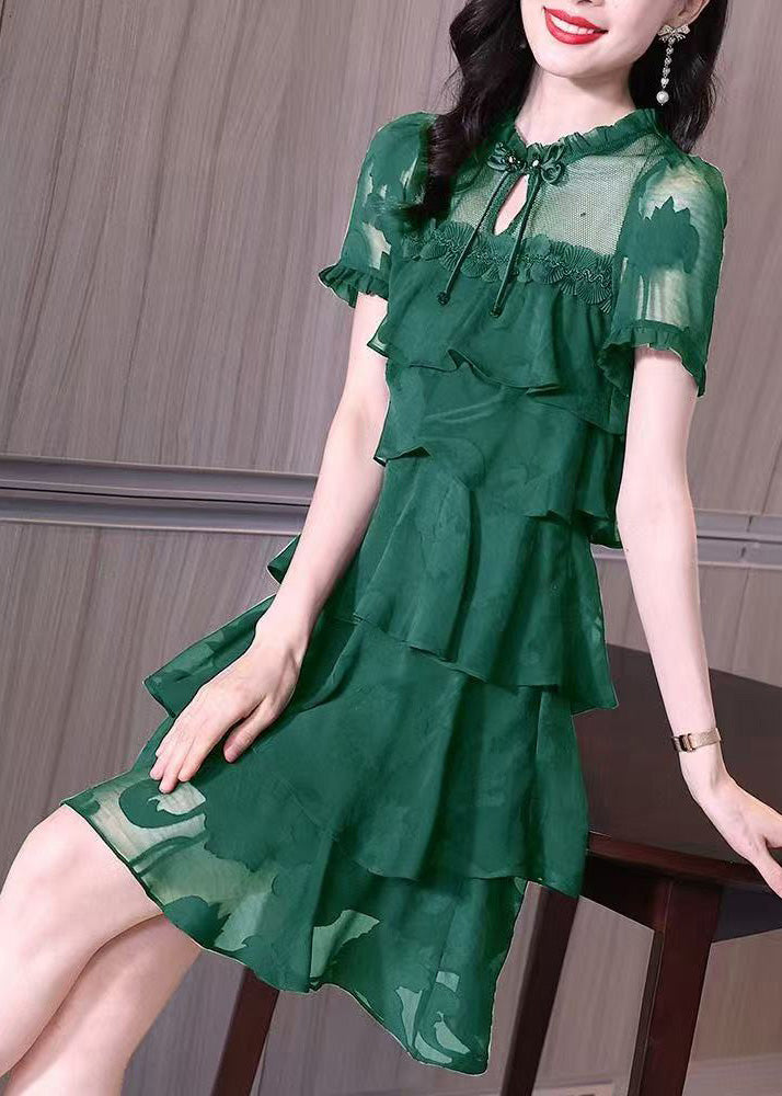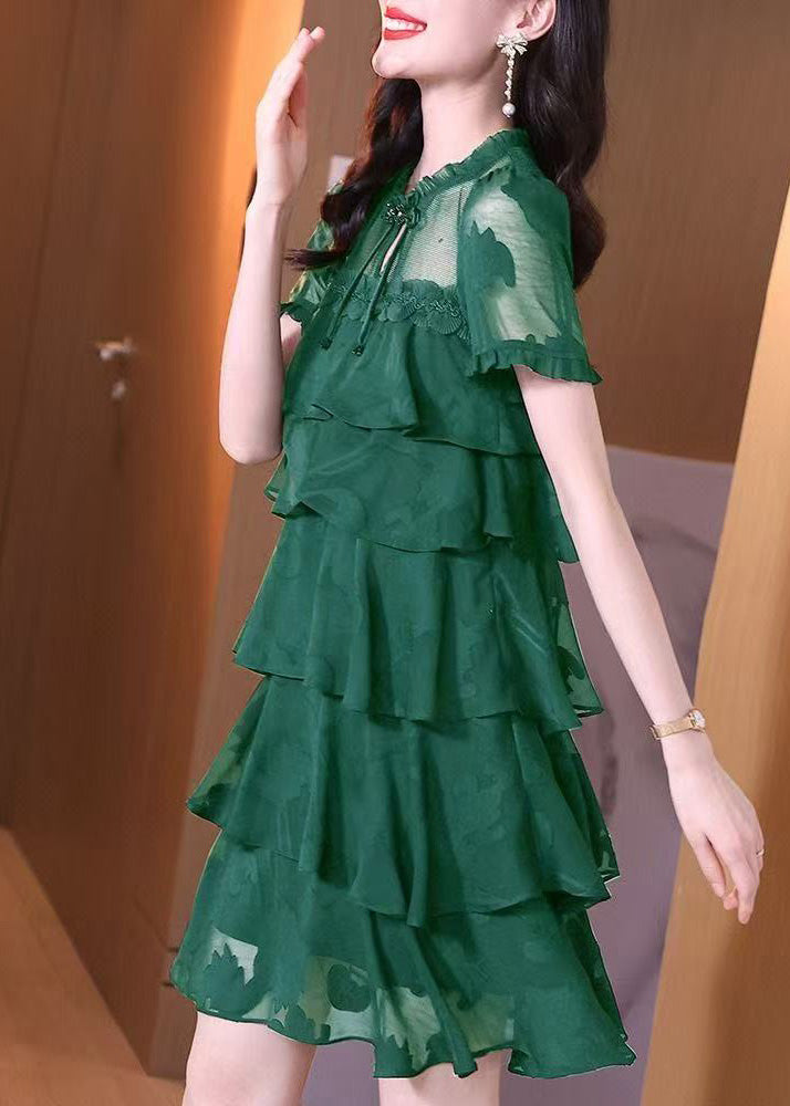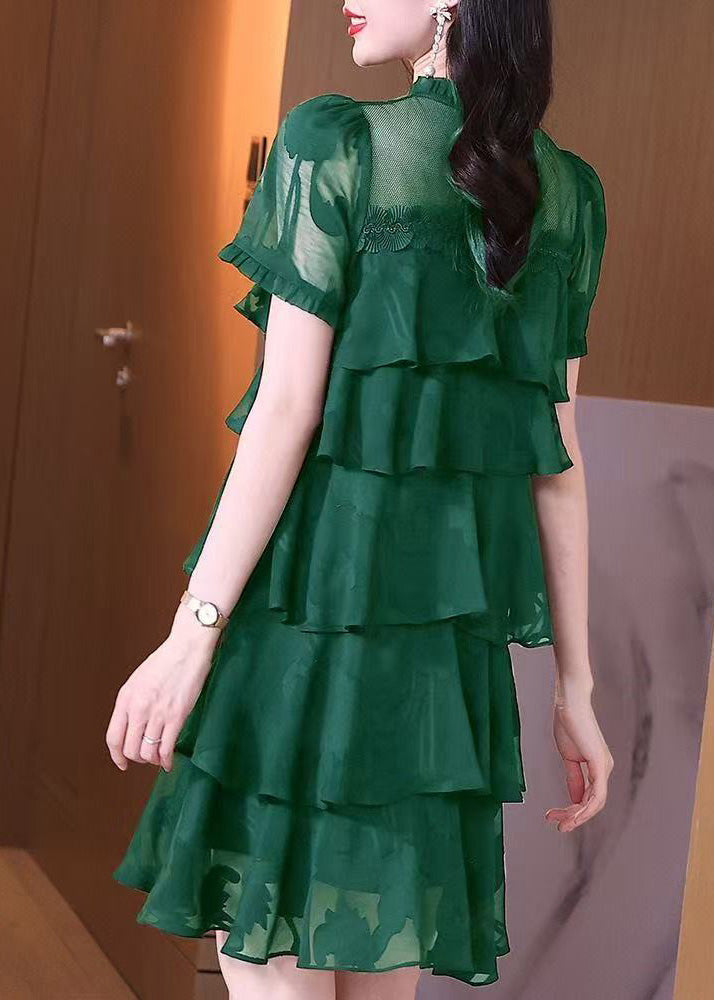 French Green Layered Ruffled Patchwork Chiffon Dresses Summer