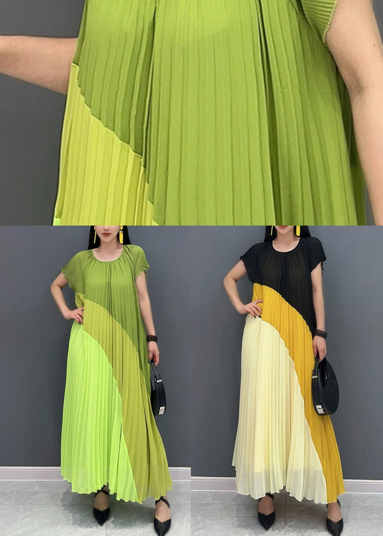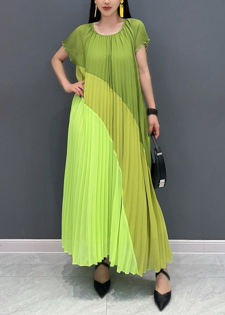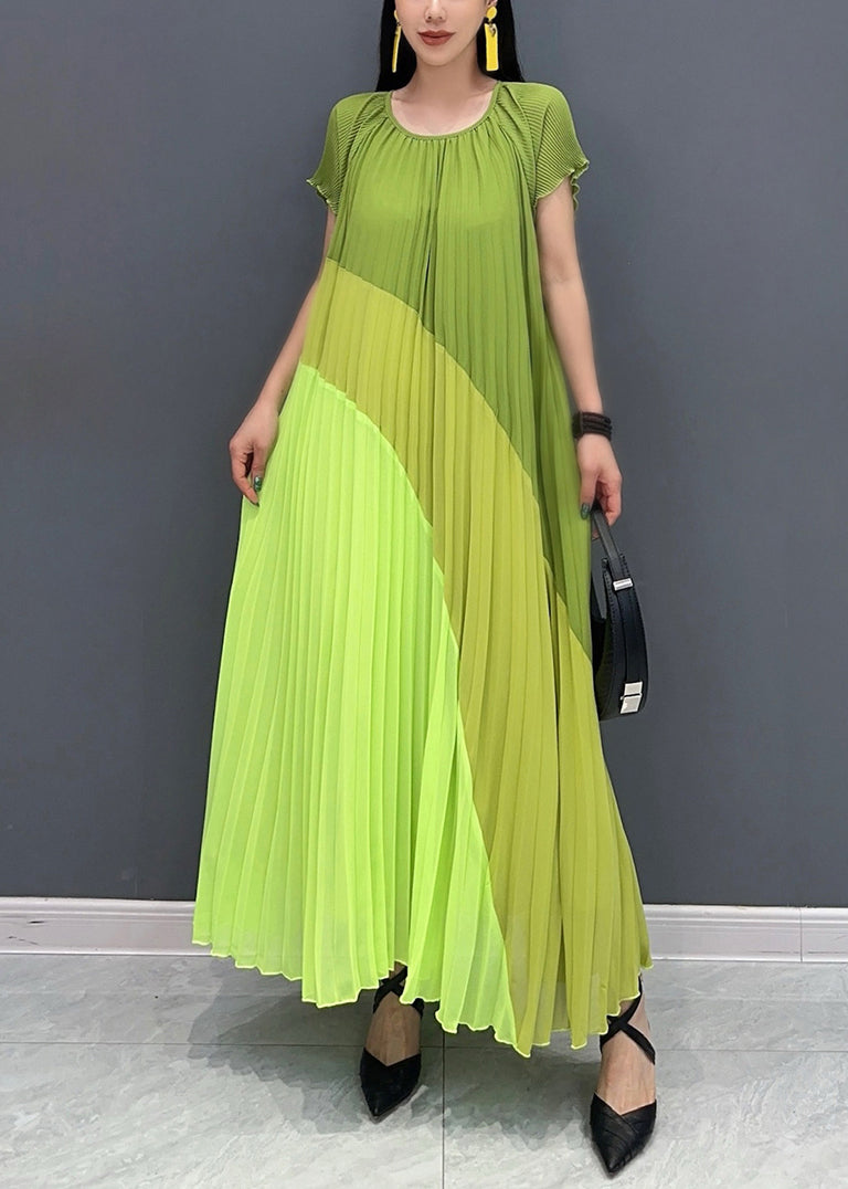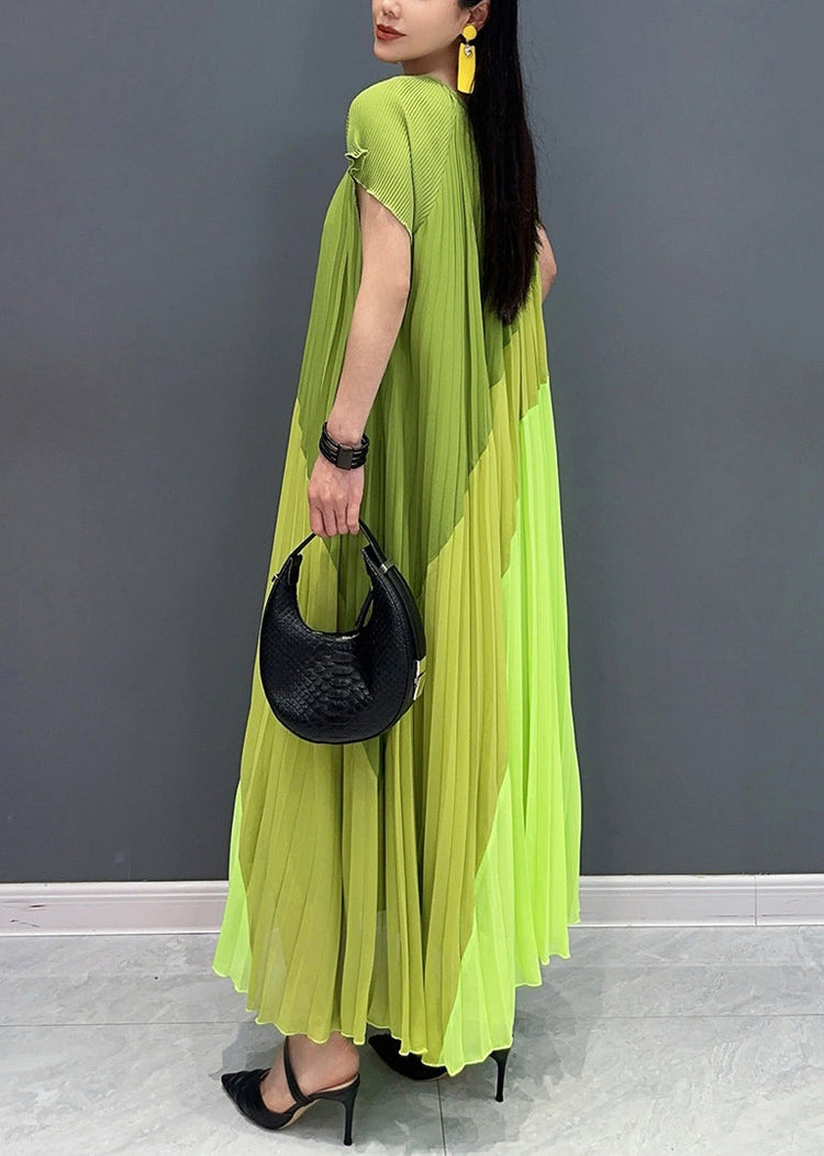 French Green O Neck Print Patchwork Chiffon Dresses Summer