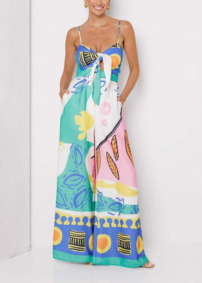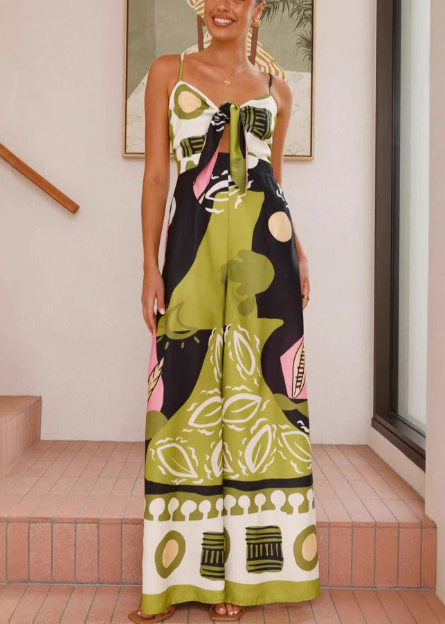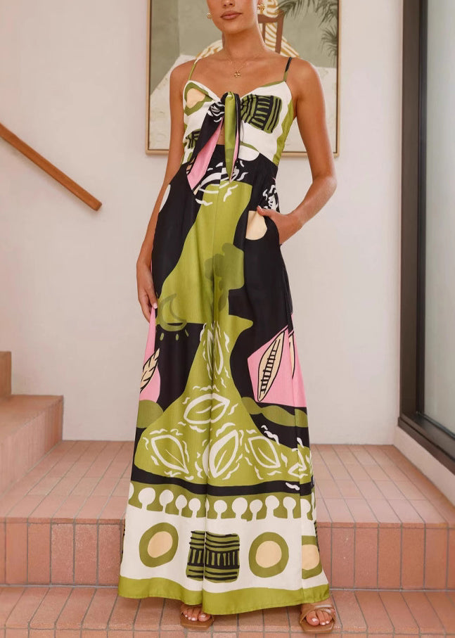 French Green Slash Neck High Waist Jumpsuit Sleeveless