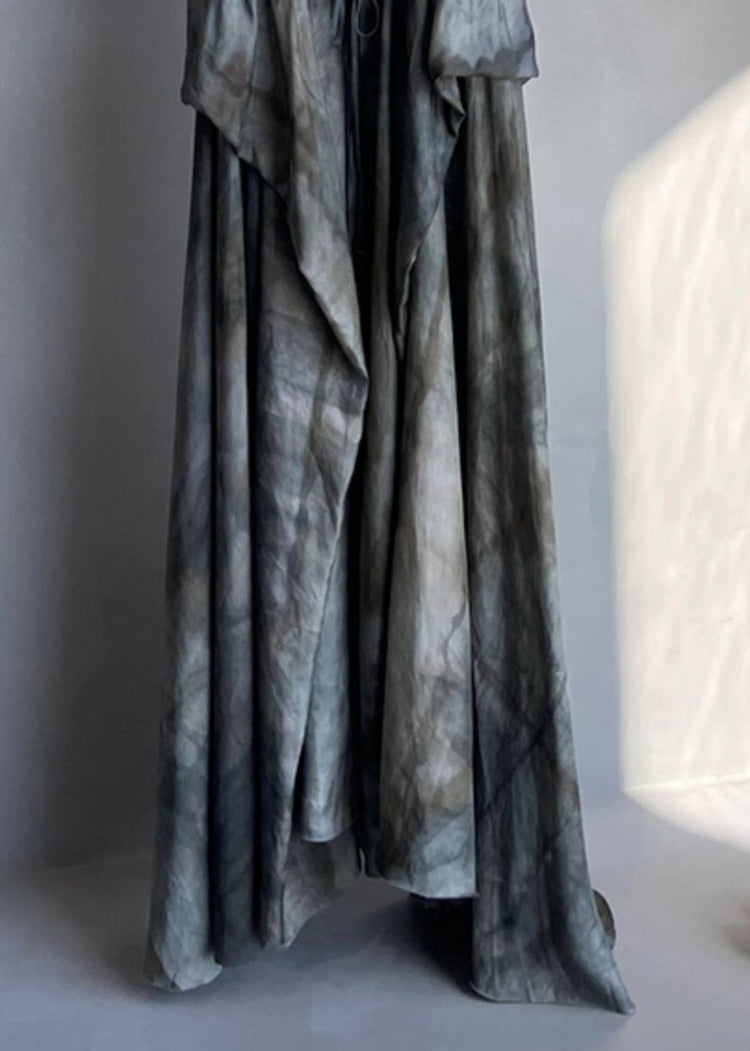 French Grey Lace Up Patchwork Linen Dress Sleeveless