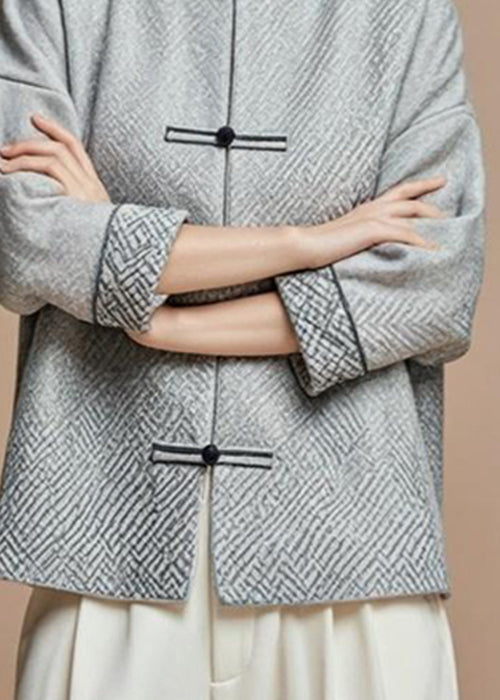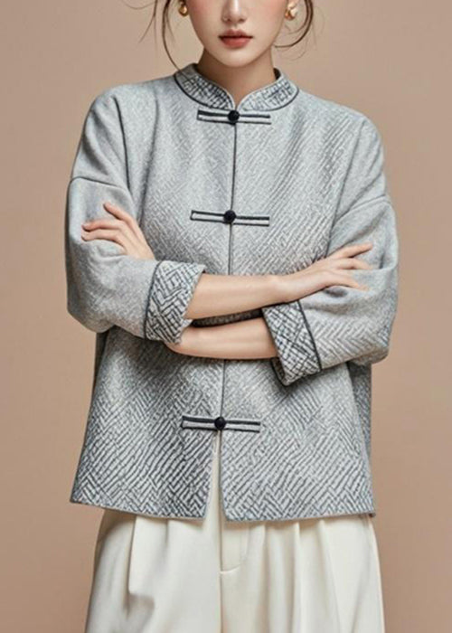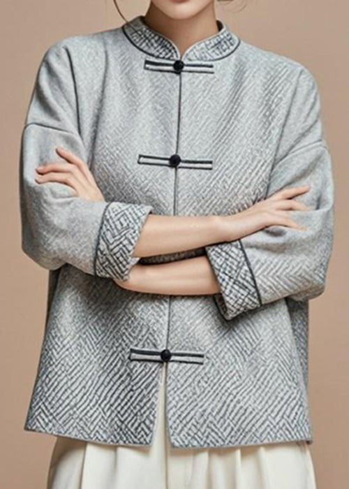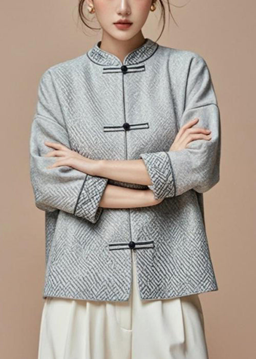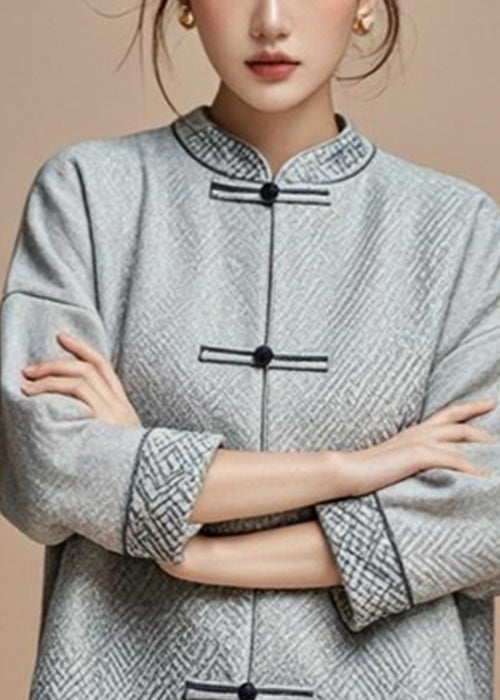 French Grey Stand Collar Button Cotton Fall Coat