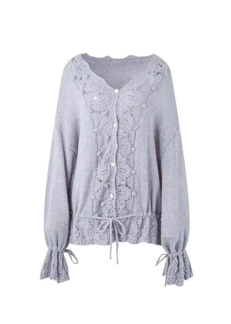 French Grey V Neck Hollow Out Button Knit Sweaters Fall