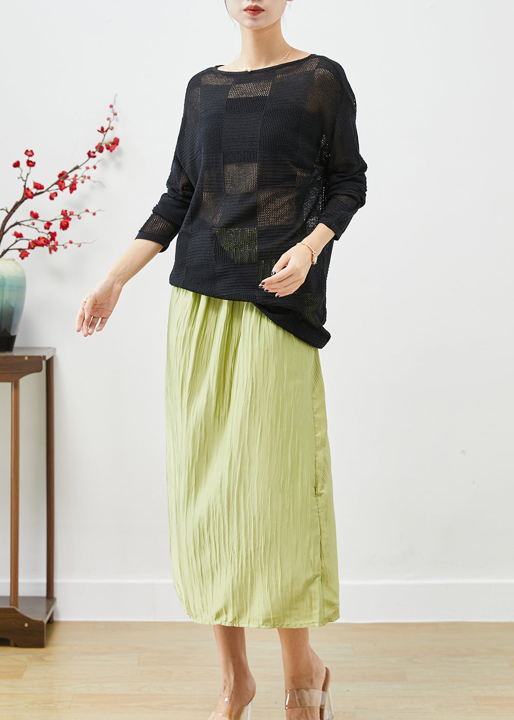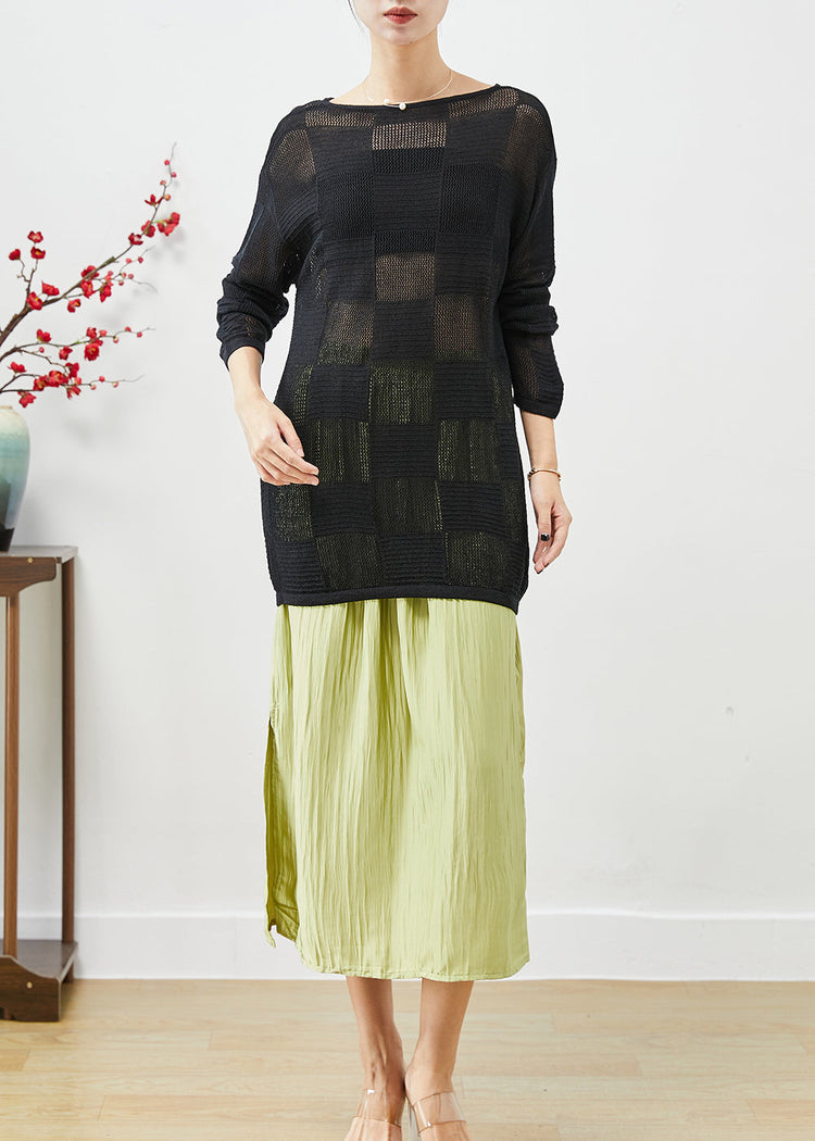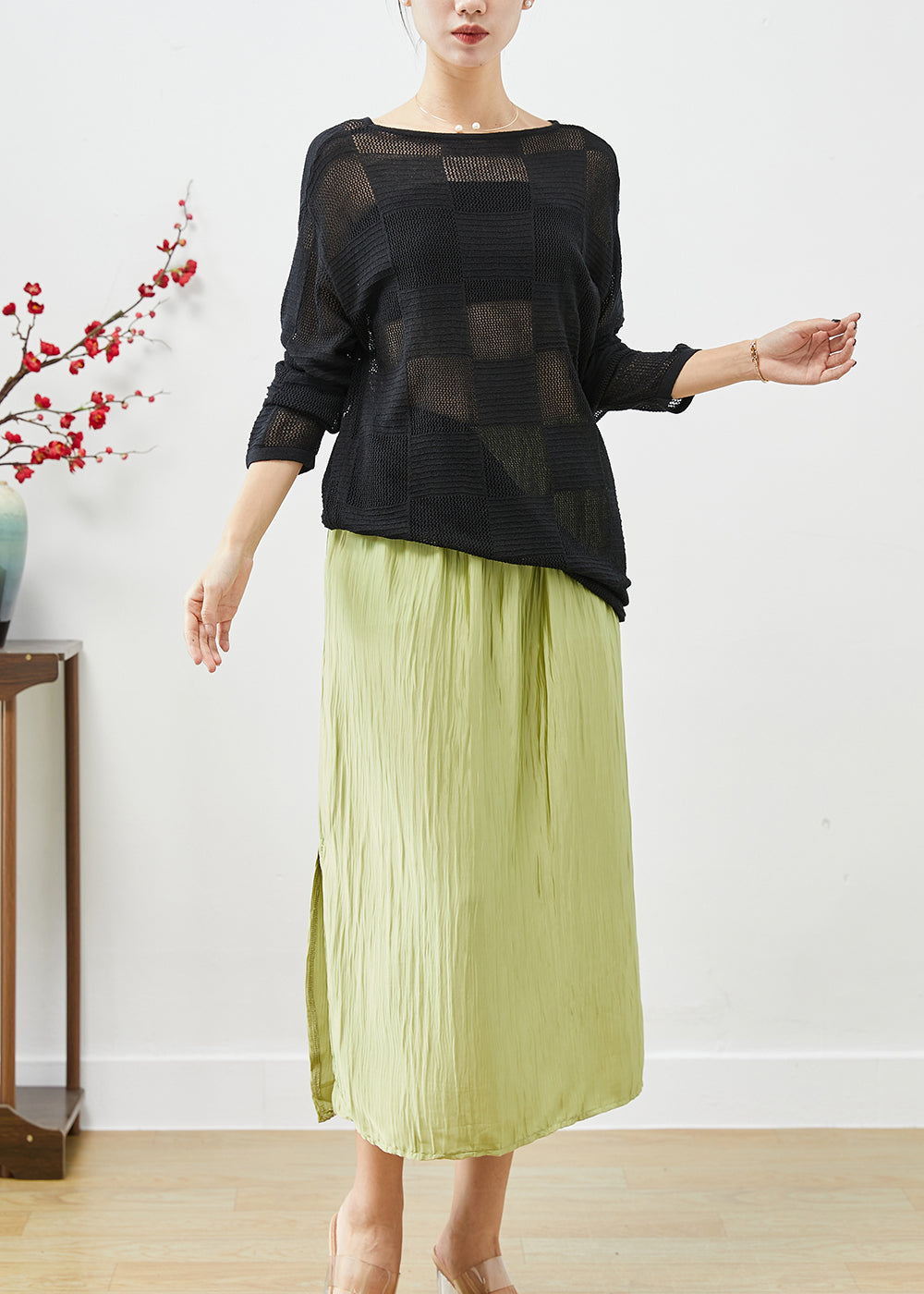 French Hollow Out Side Open Knit Tops And Skirts Two Pieces Set Fall