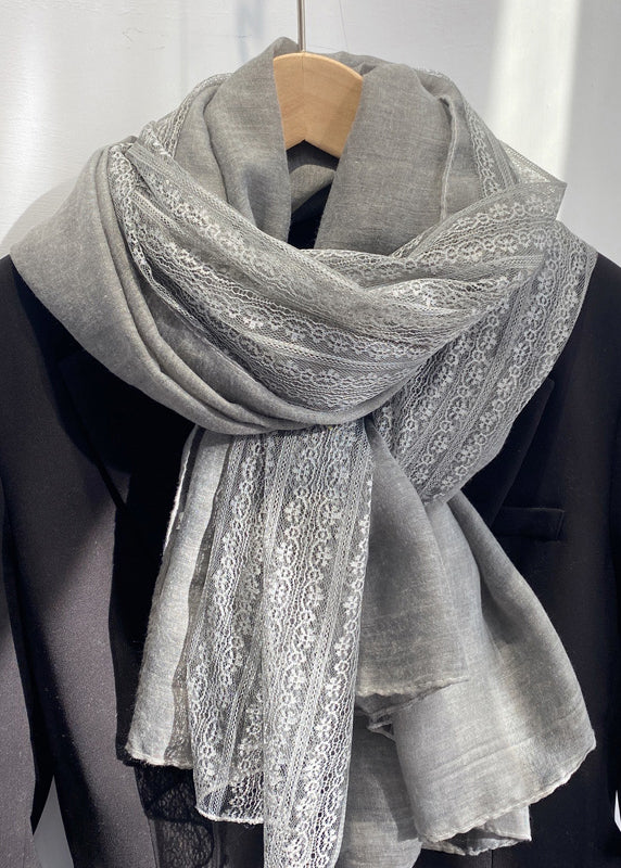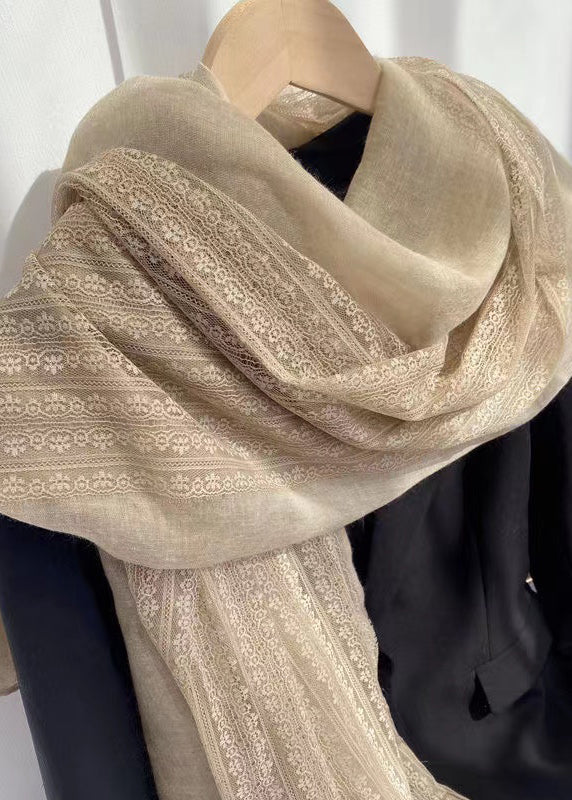 French Khaki Lace Patchwork Autumn New Cotton Scarf