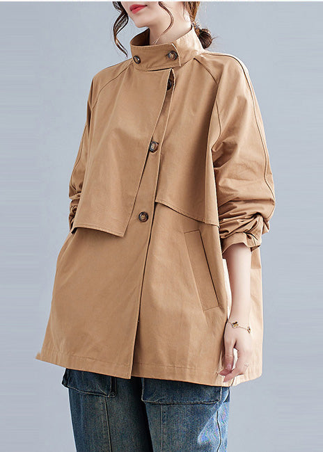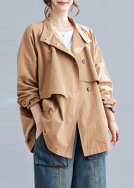 French Khaki Oversized Cotton Trench Coats Spring