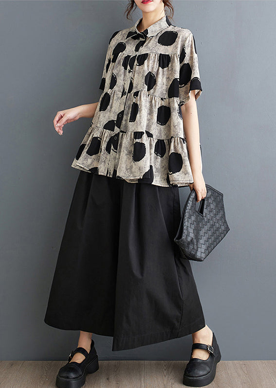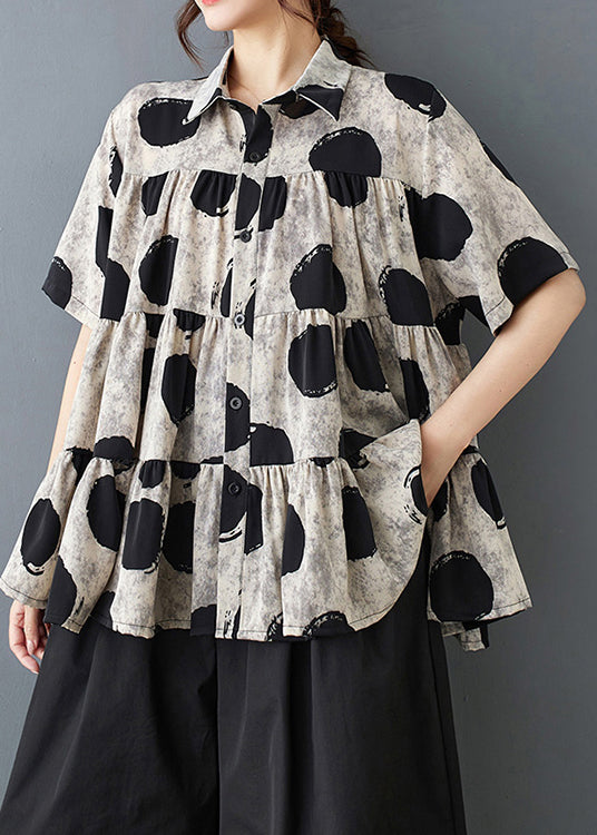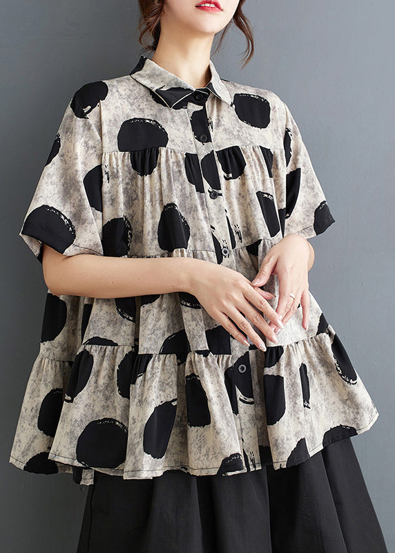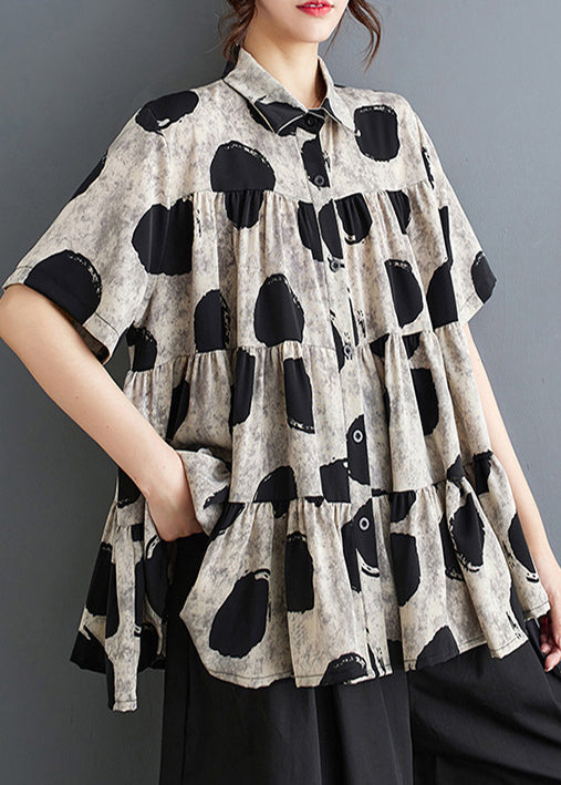 French Khaki Oversized Patchwork Cotton Blouse Top Summer