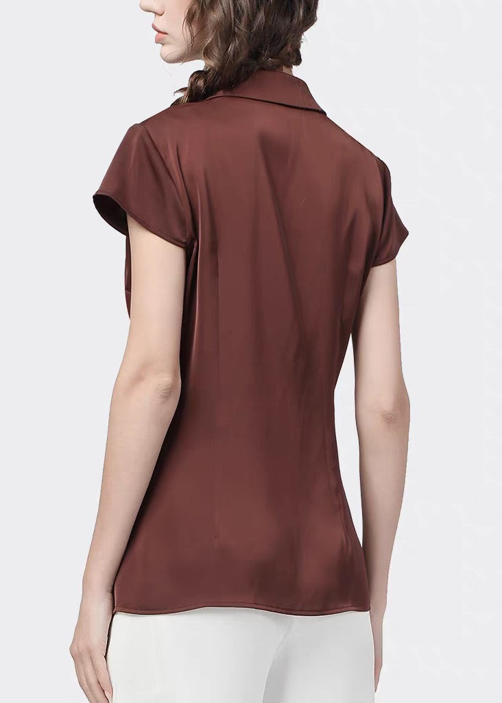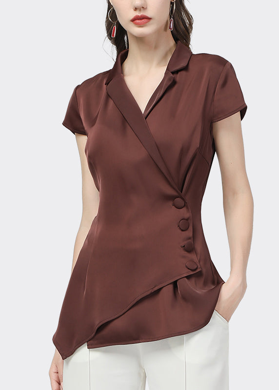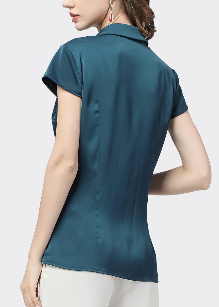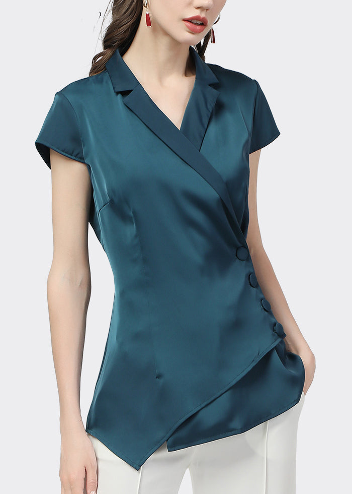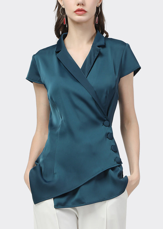 French Lake Blue Notched Asymmetrical Button Shirt Short Sleeve