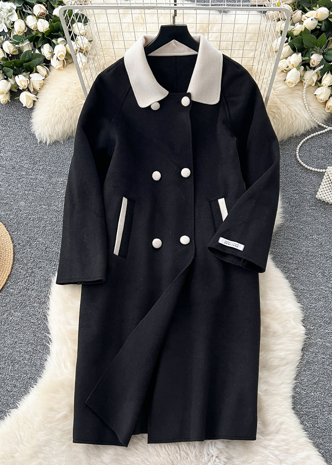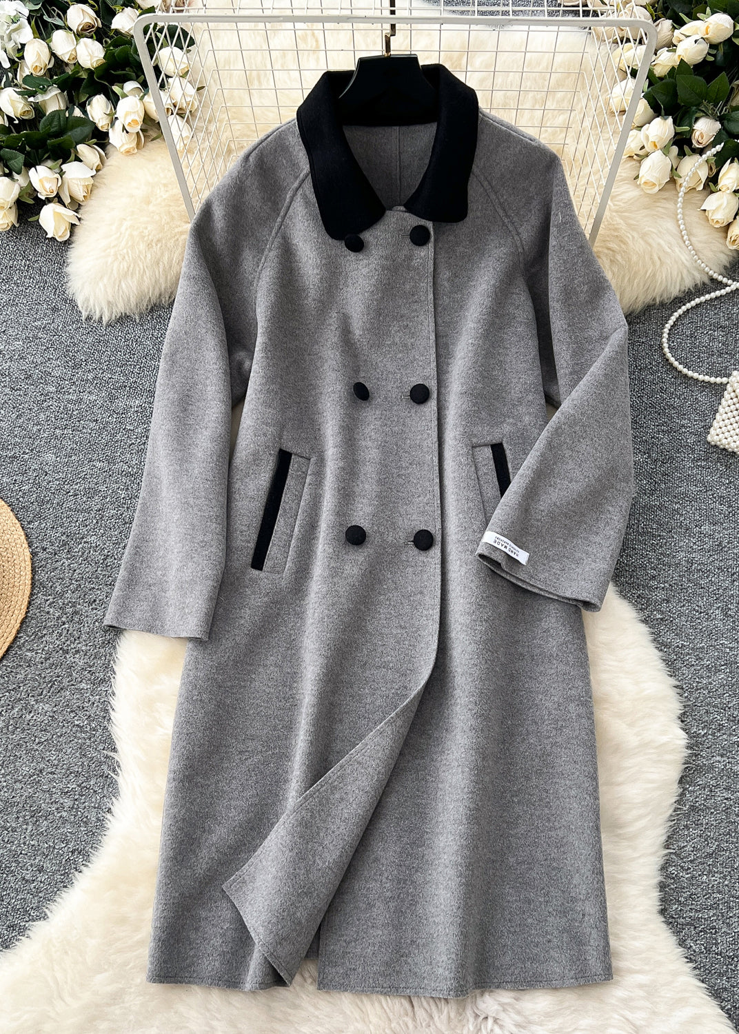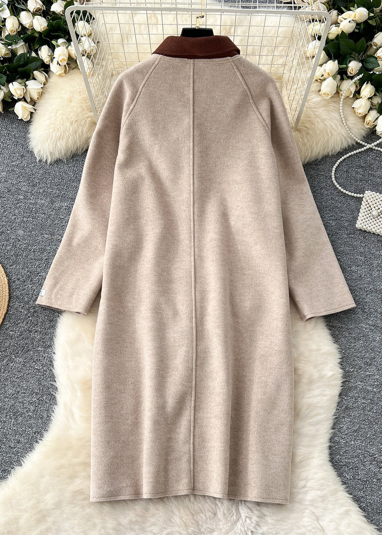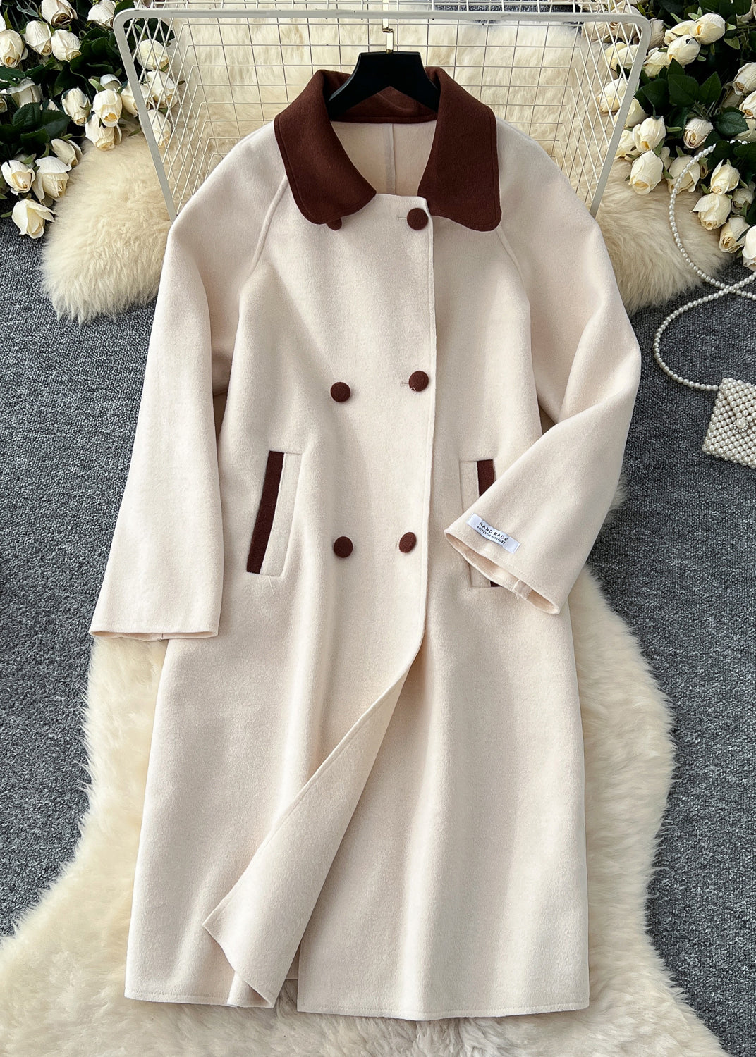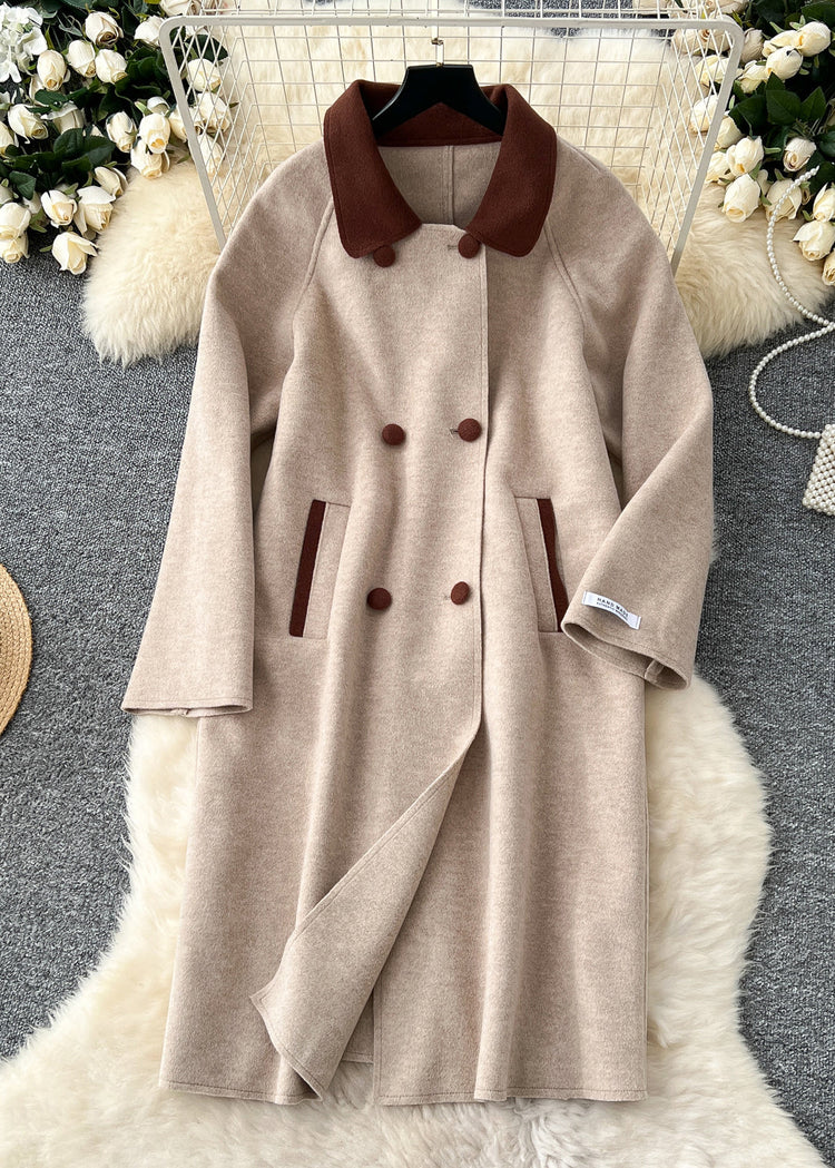 French Light Camel Double Breast Pockets Woolen Coats Winter