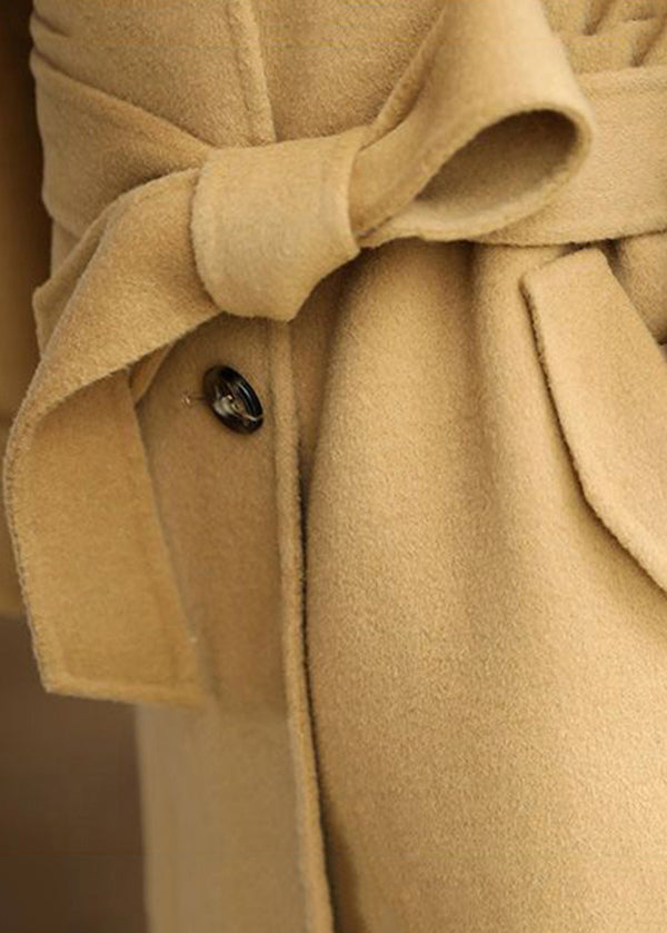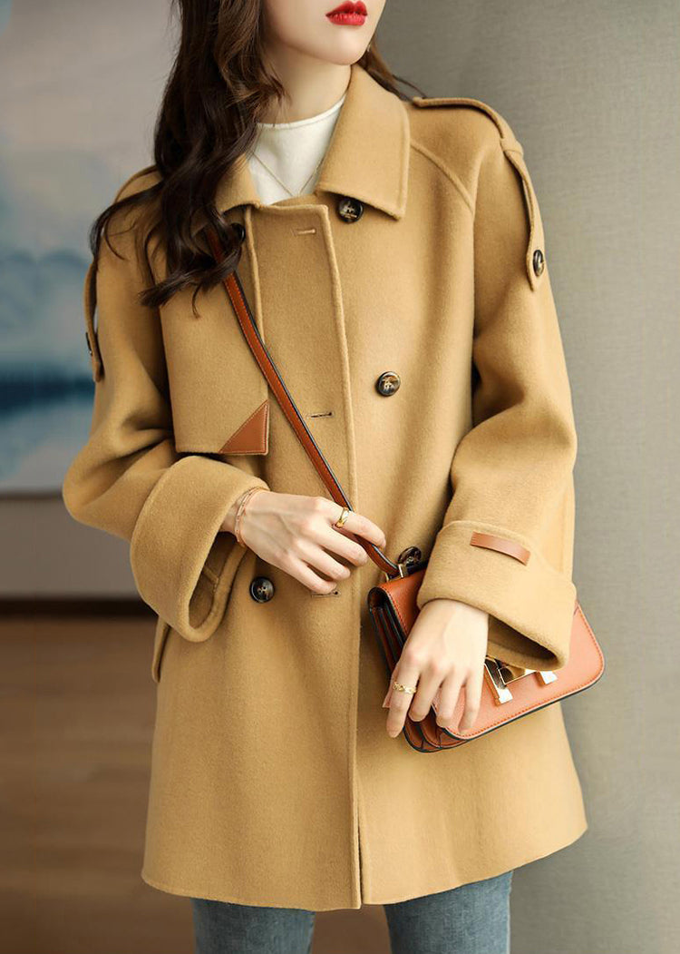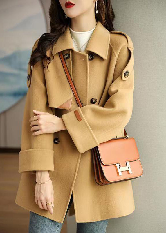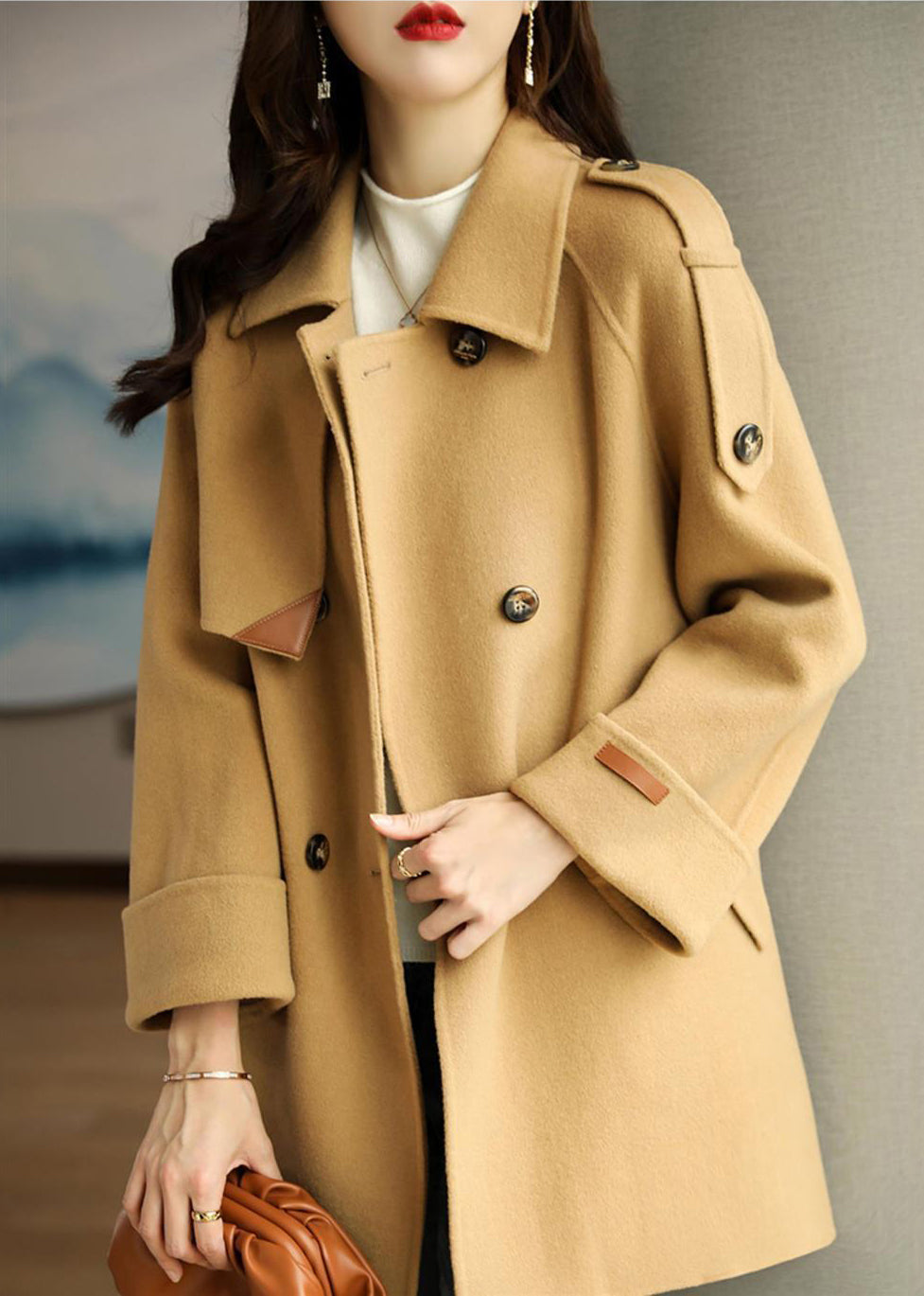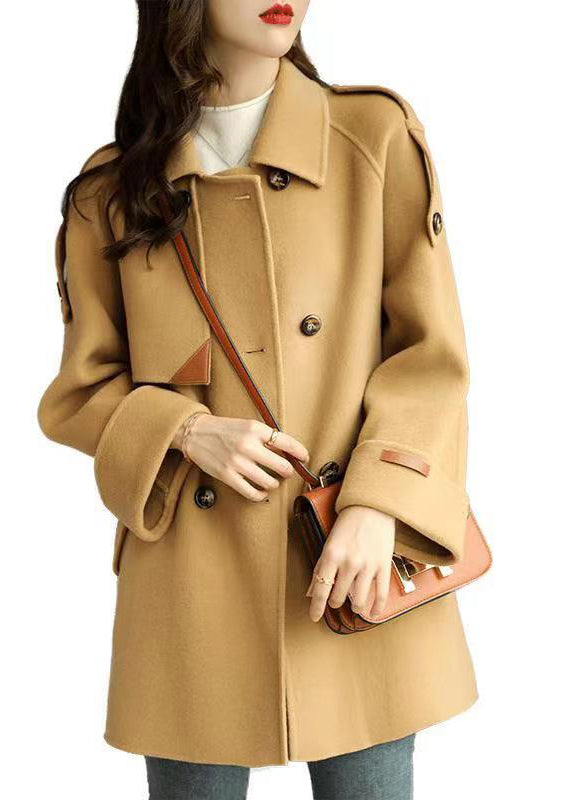 French Light Camel Peter Pan Collar Double Breast Woolen Coats Fall