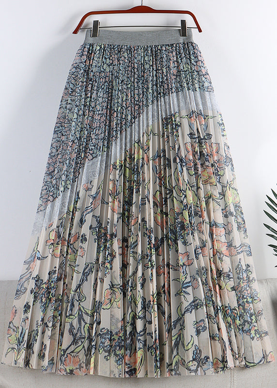 French Light Purple Print Elastic Waist Tulle Skirts Spring