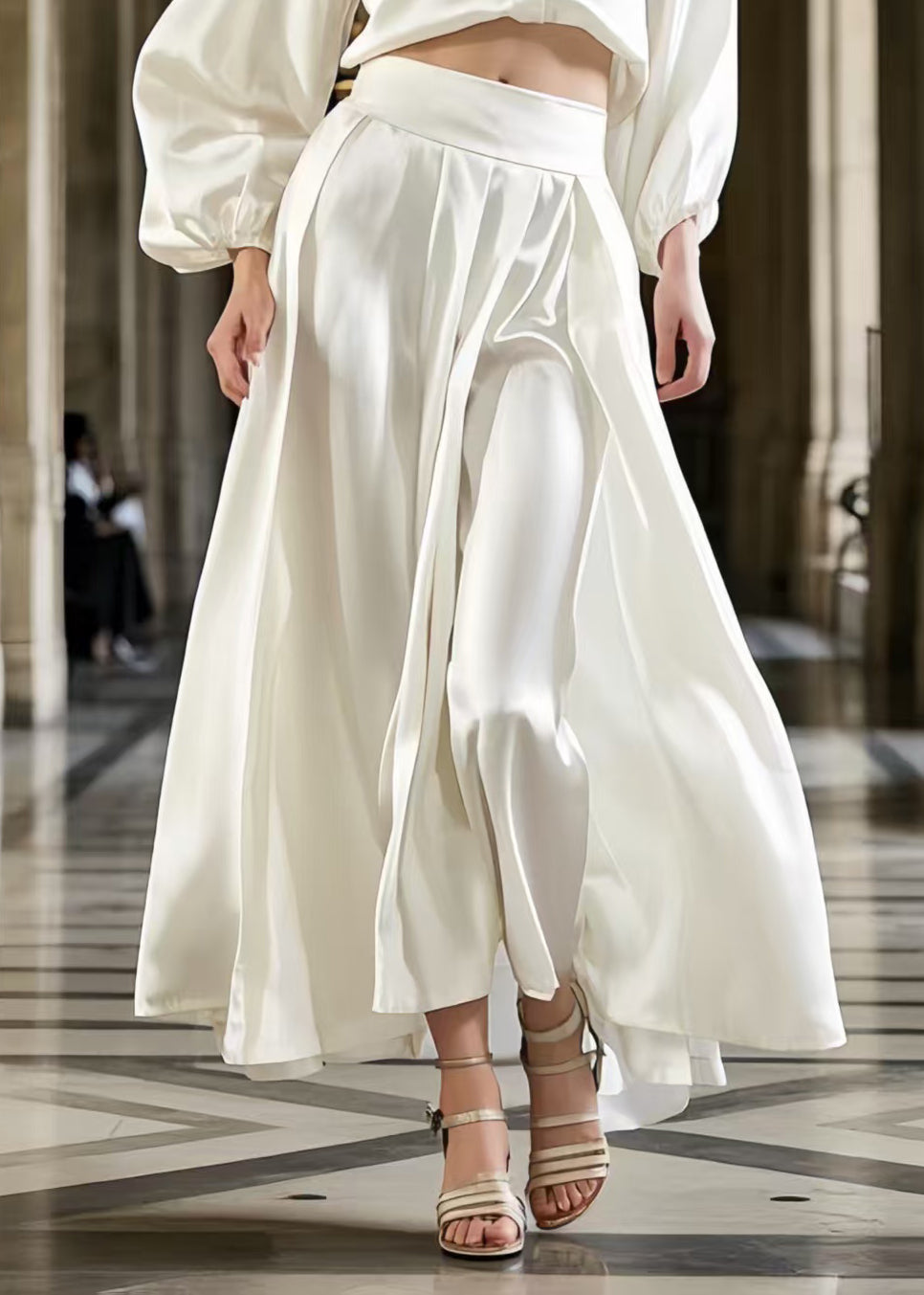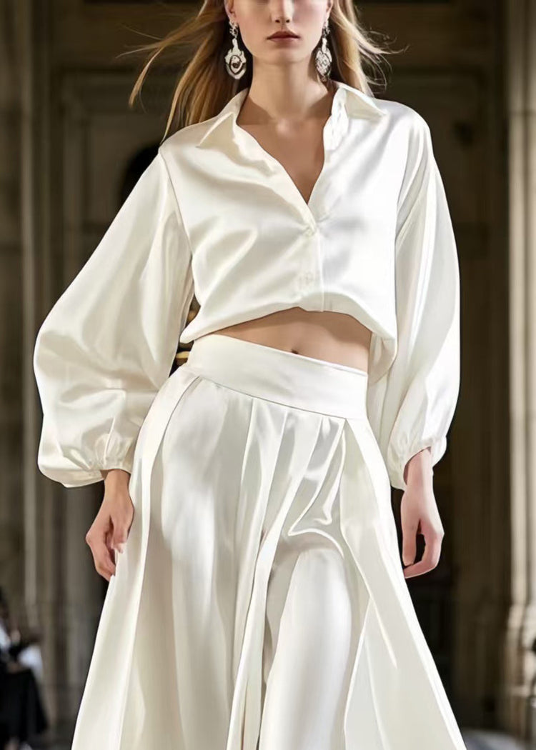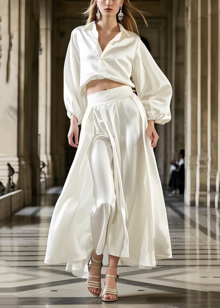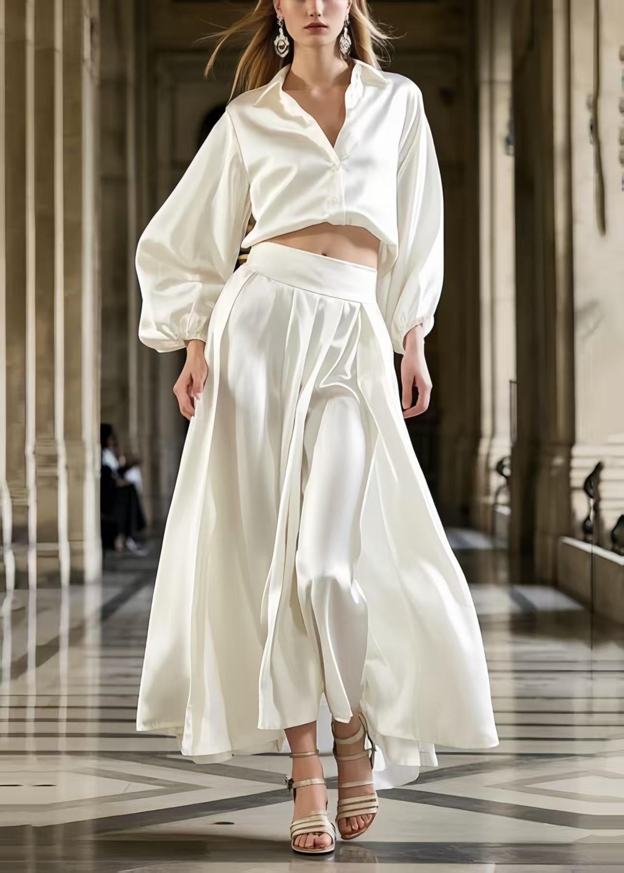 French Milk White Draping Fine Silk Two Piece Set Women Clothing Spring