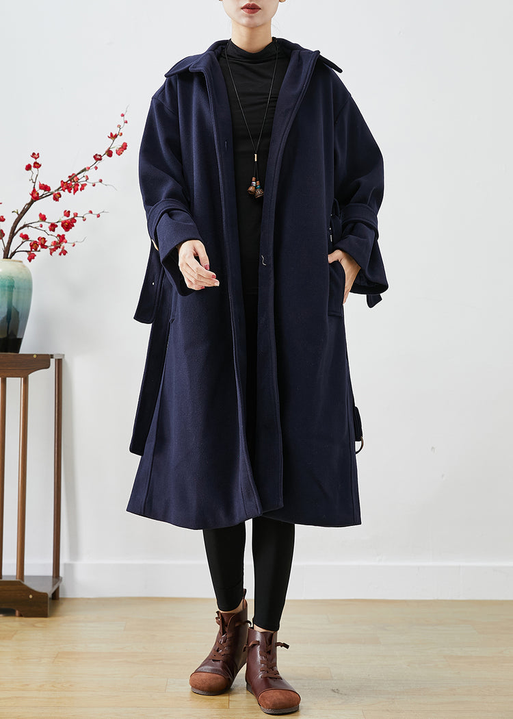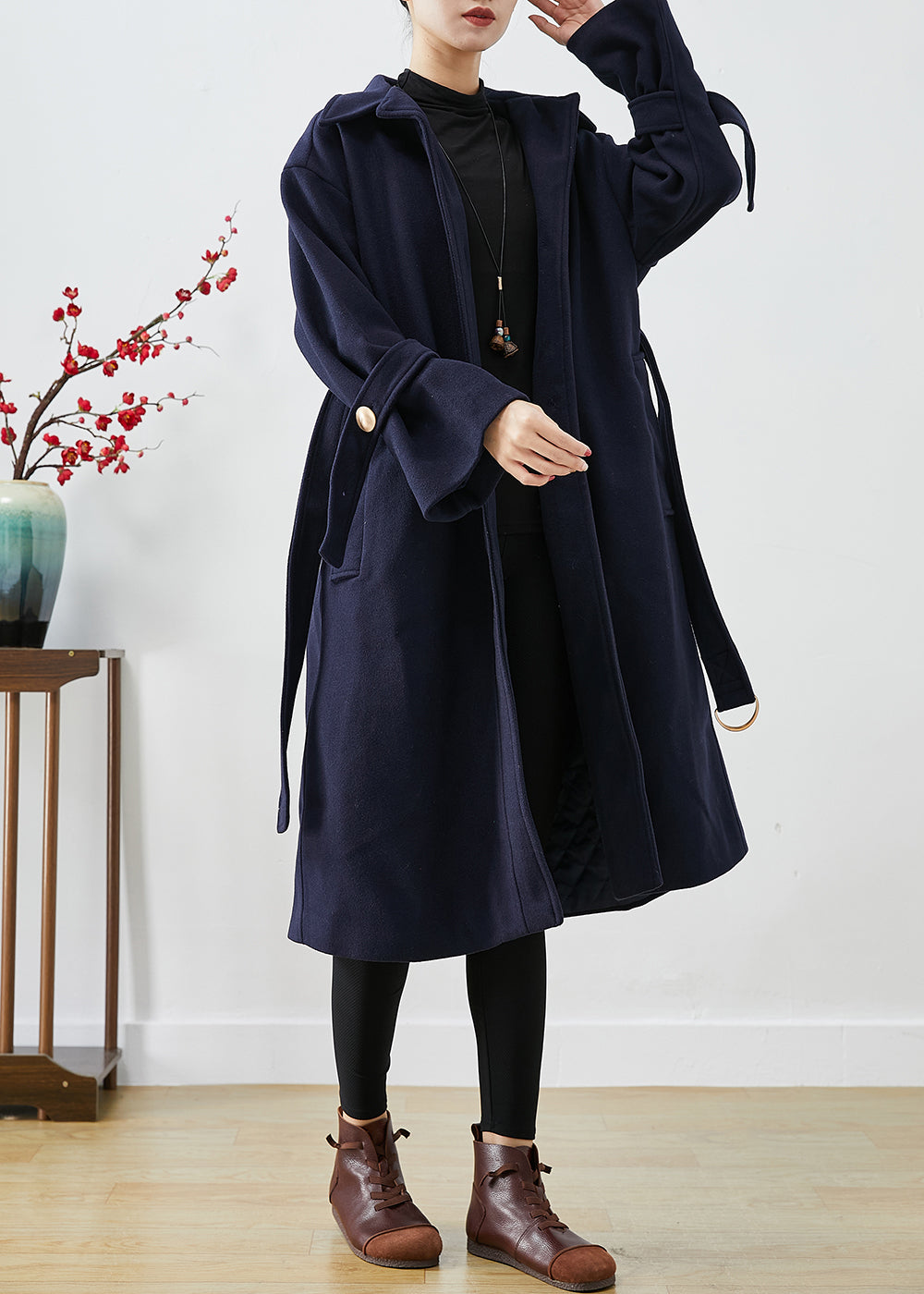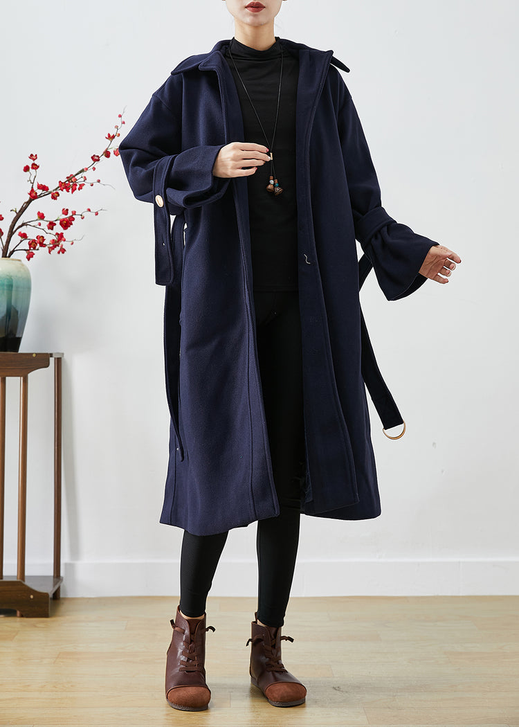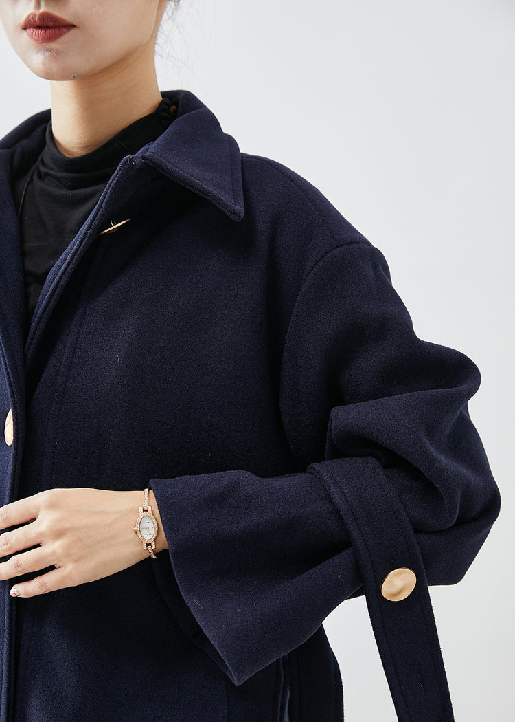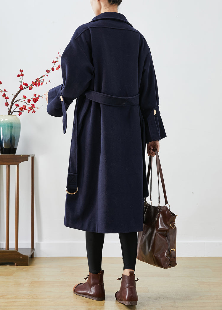 French Navy Slim Fit Thick Woolen Trench Coats Winter