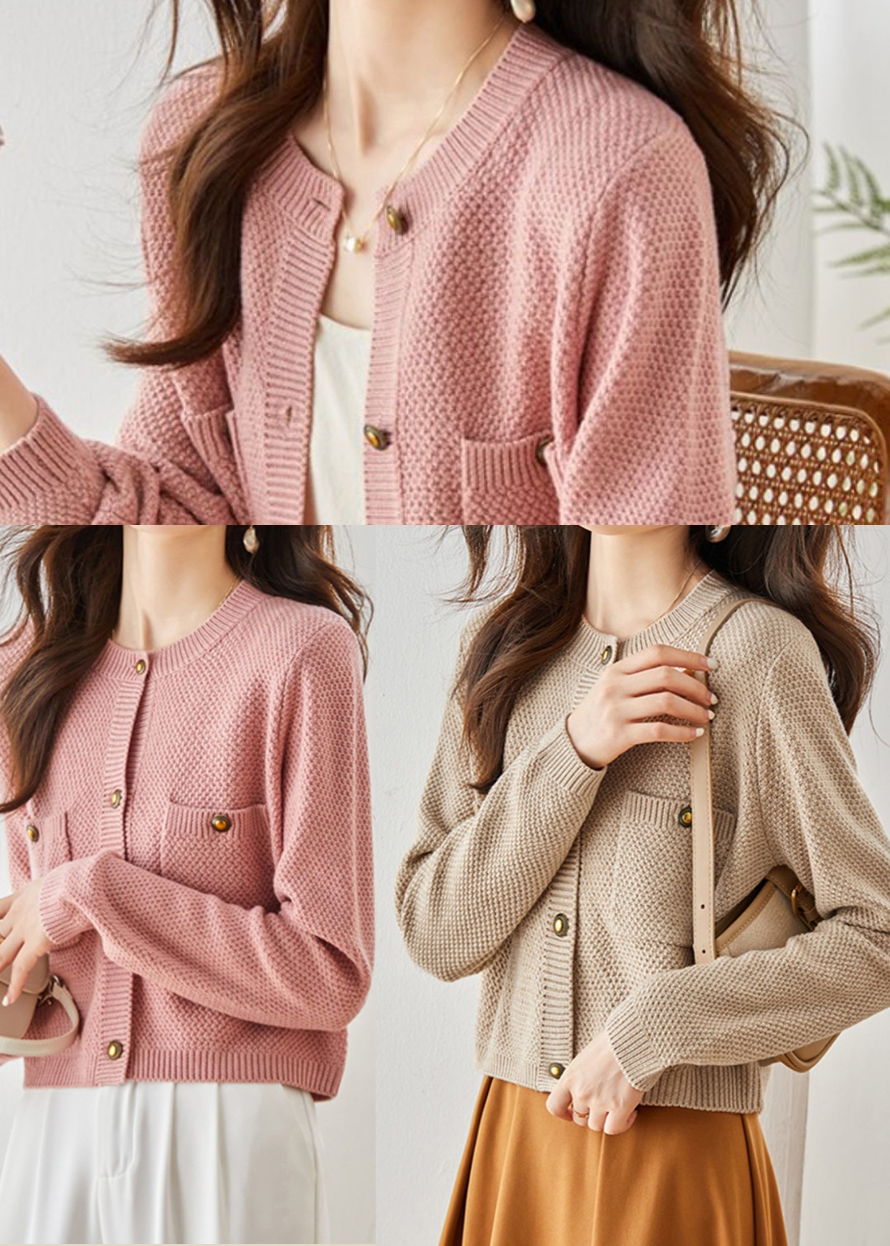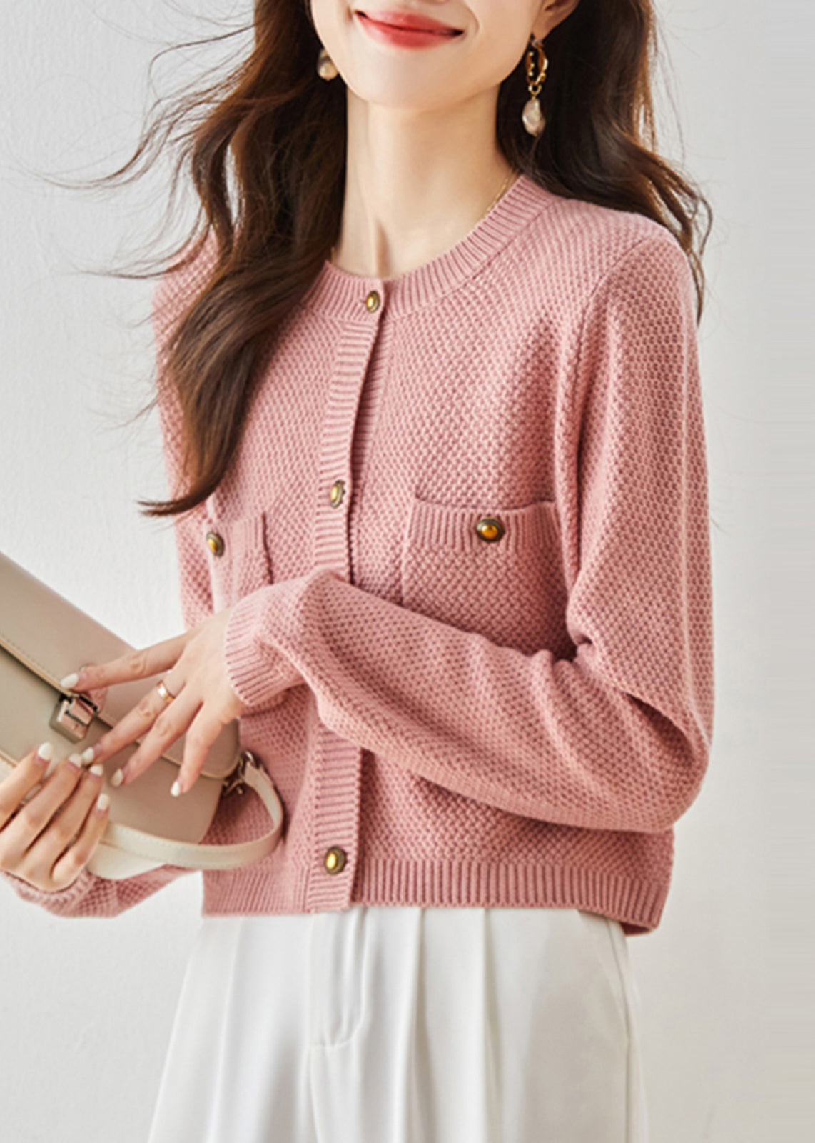 French Pink Cozy Cable Knit Cardigan Spring