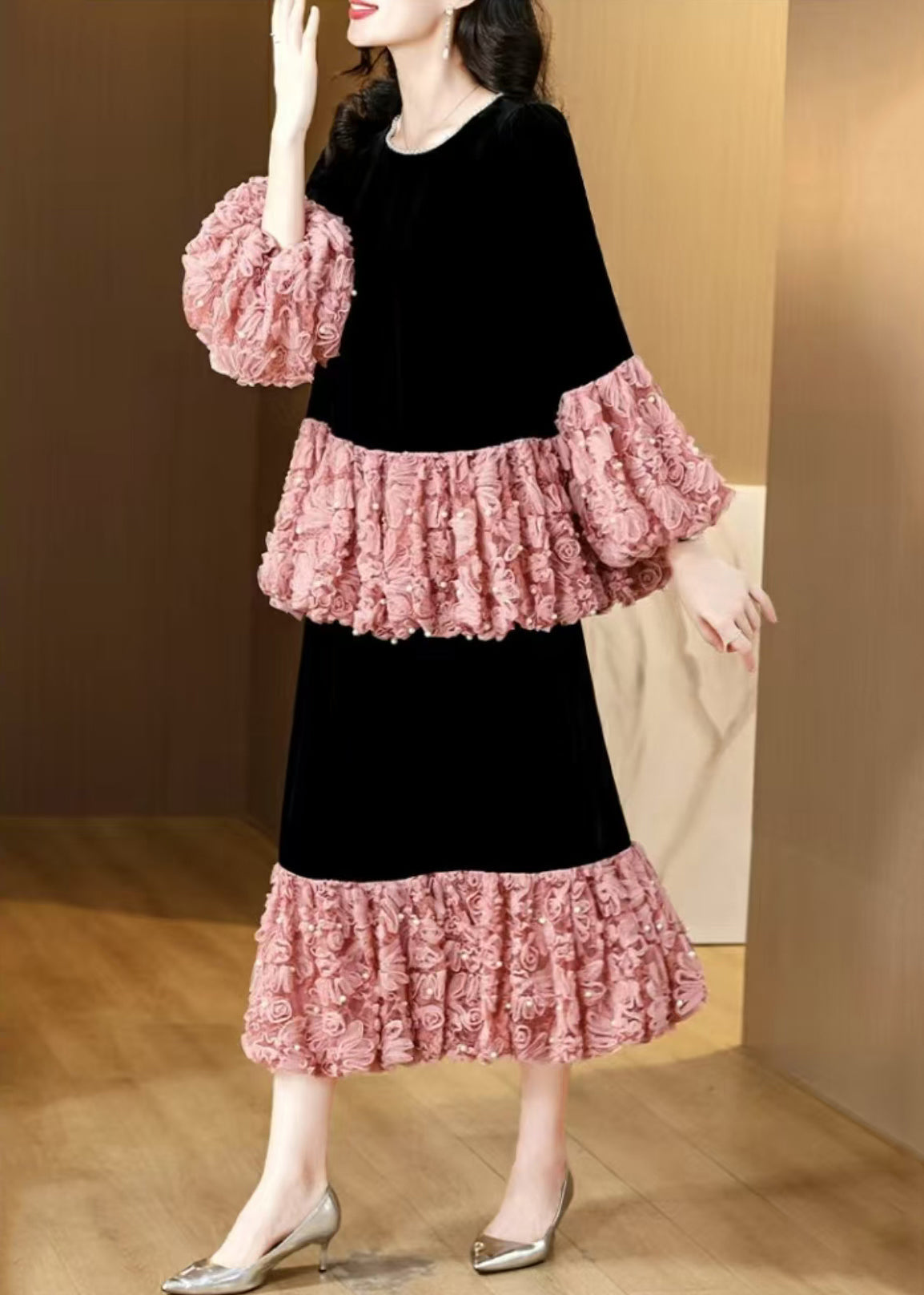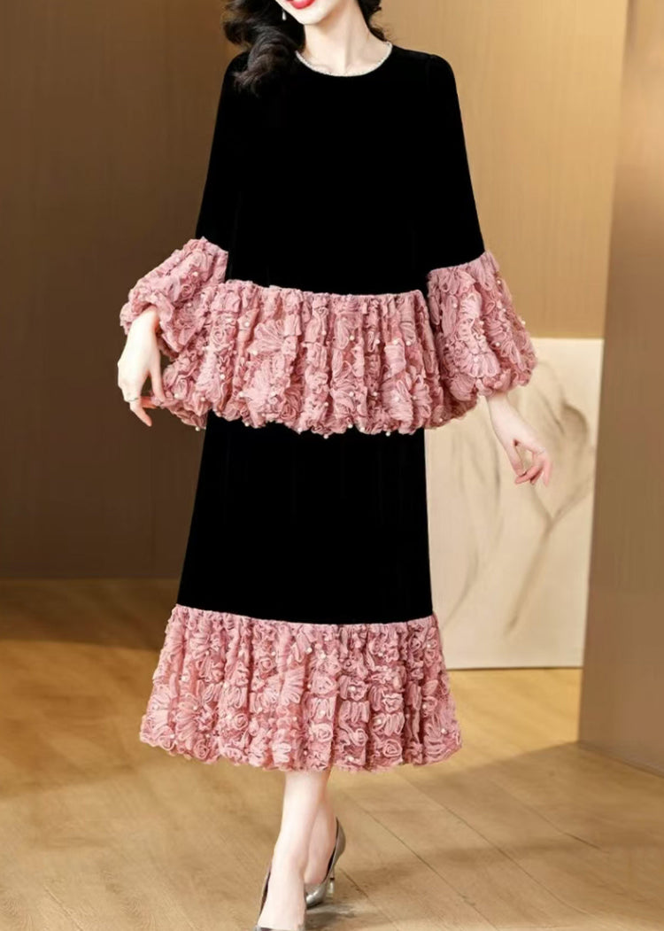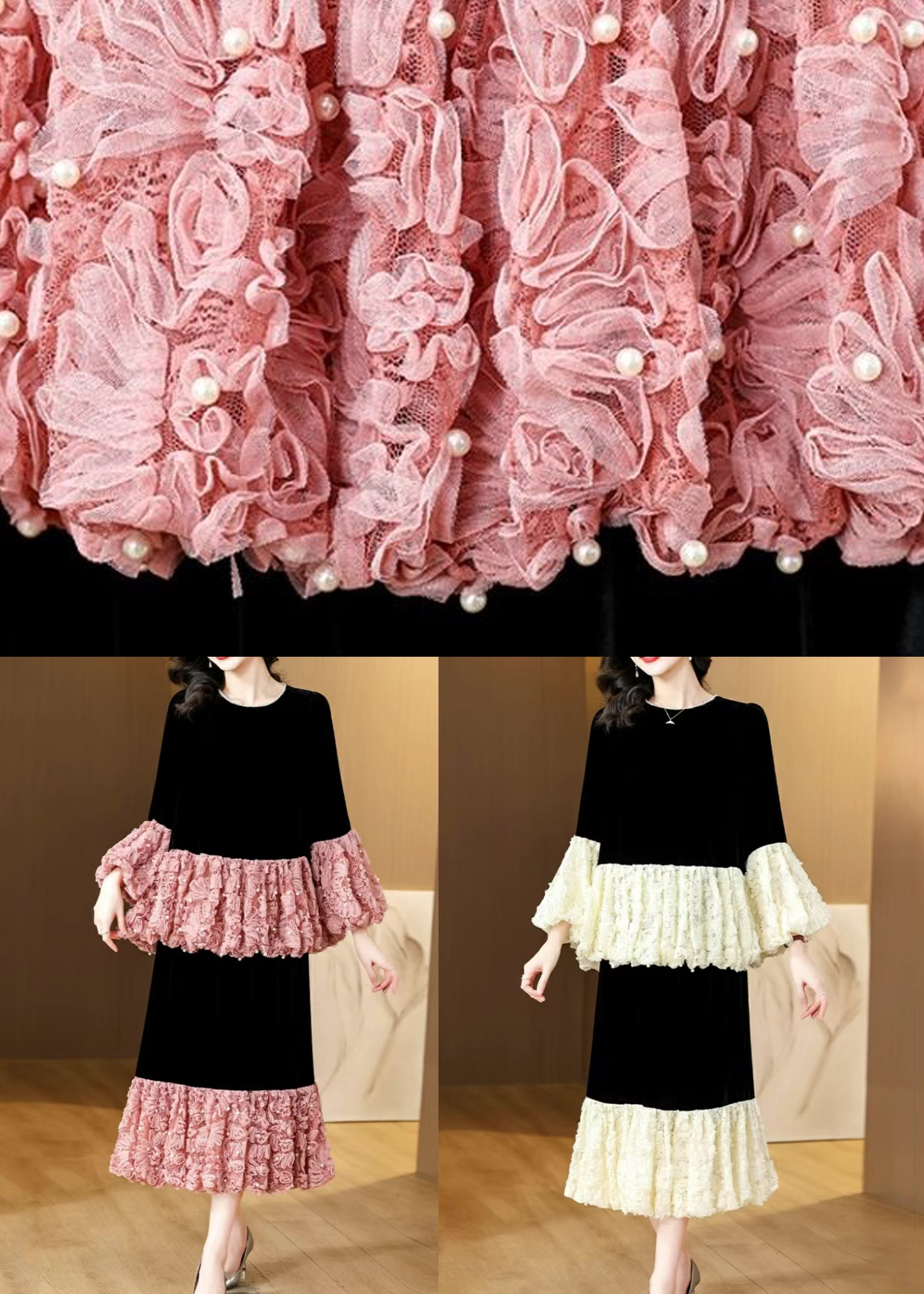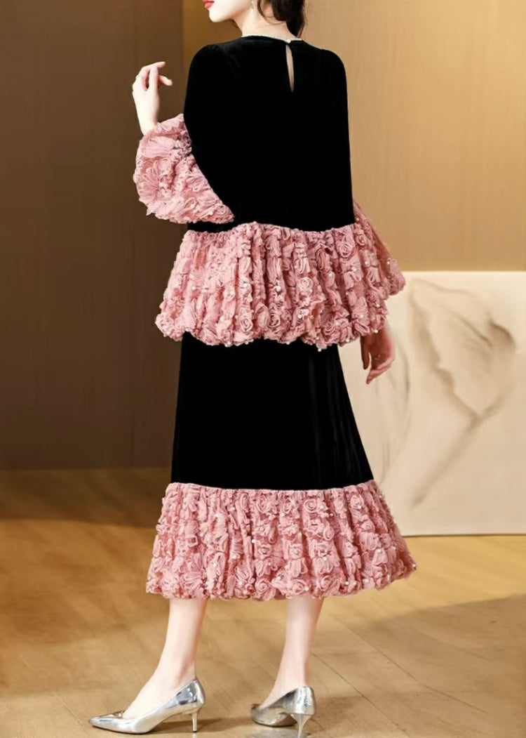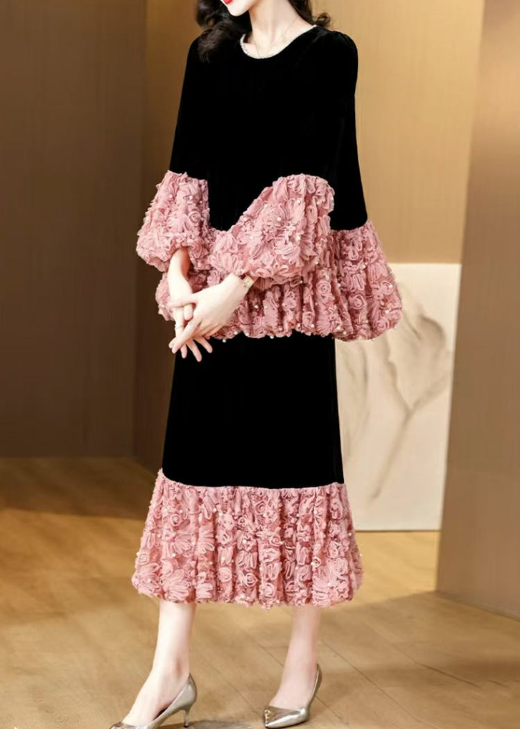 French Pink Pearl Patchwork Silk Velvet Two Piece Suit Set Spring