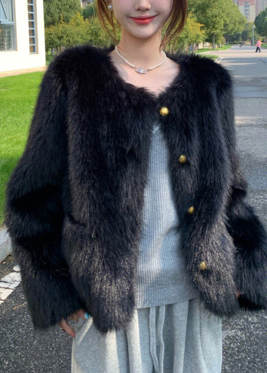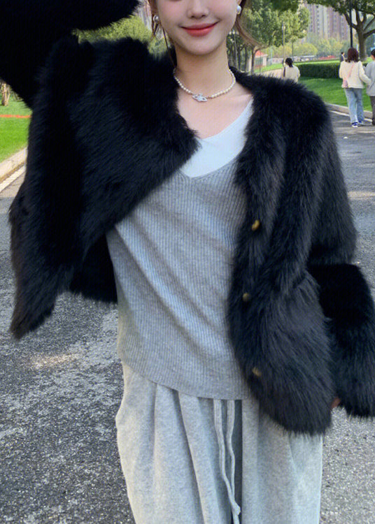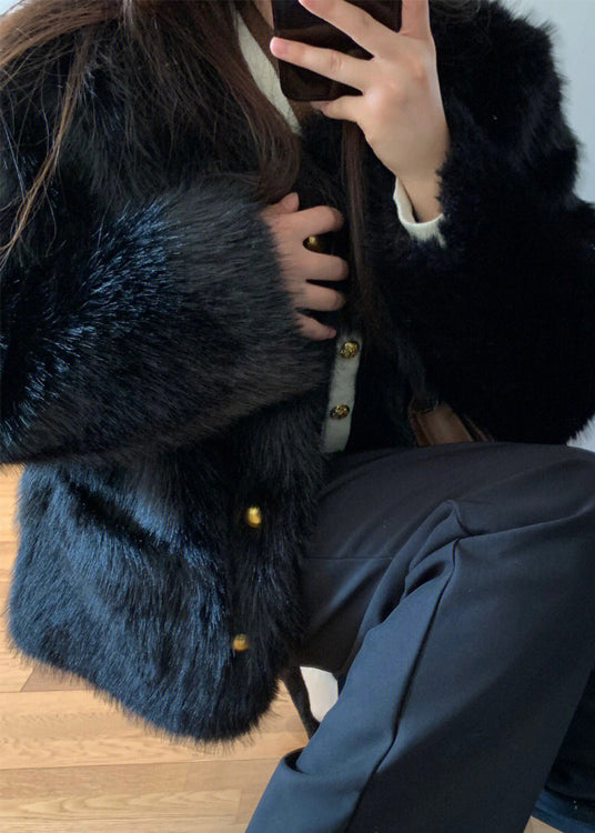 French Pink Pockets Button Faux Fur Short Coat Winter