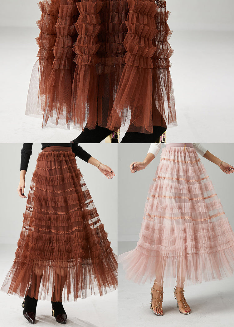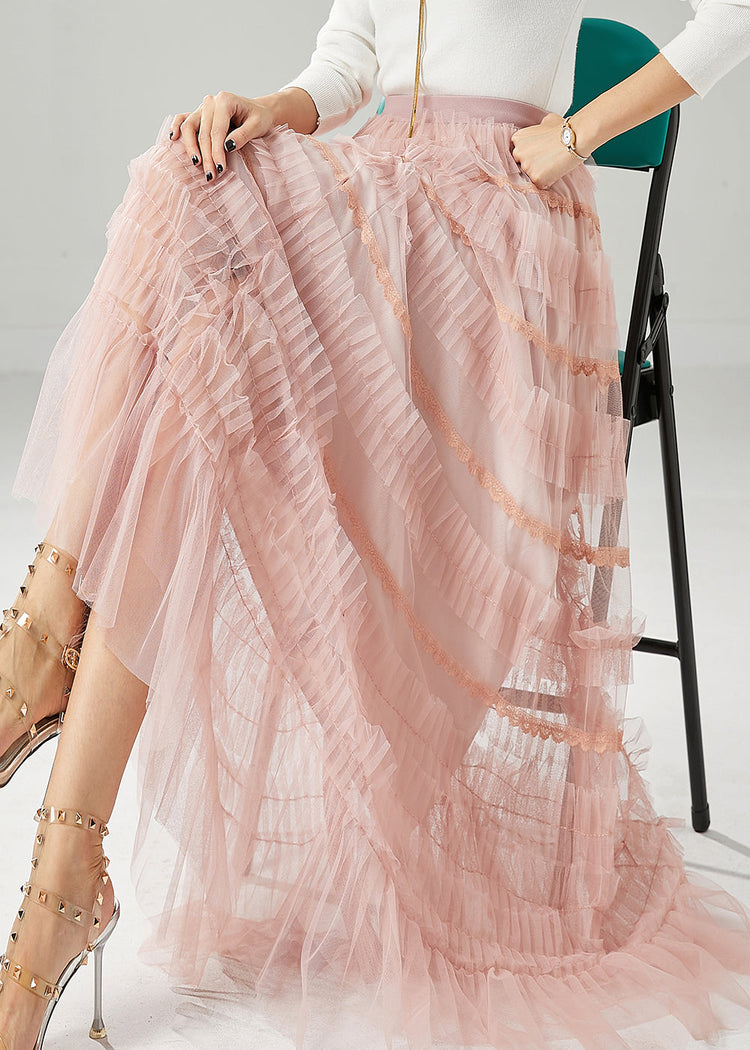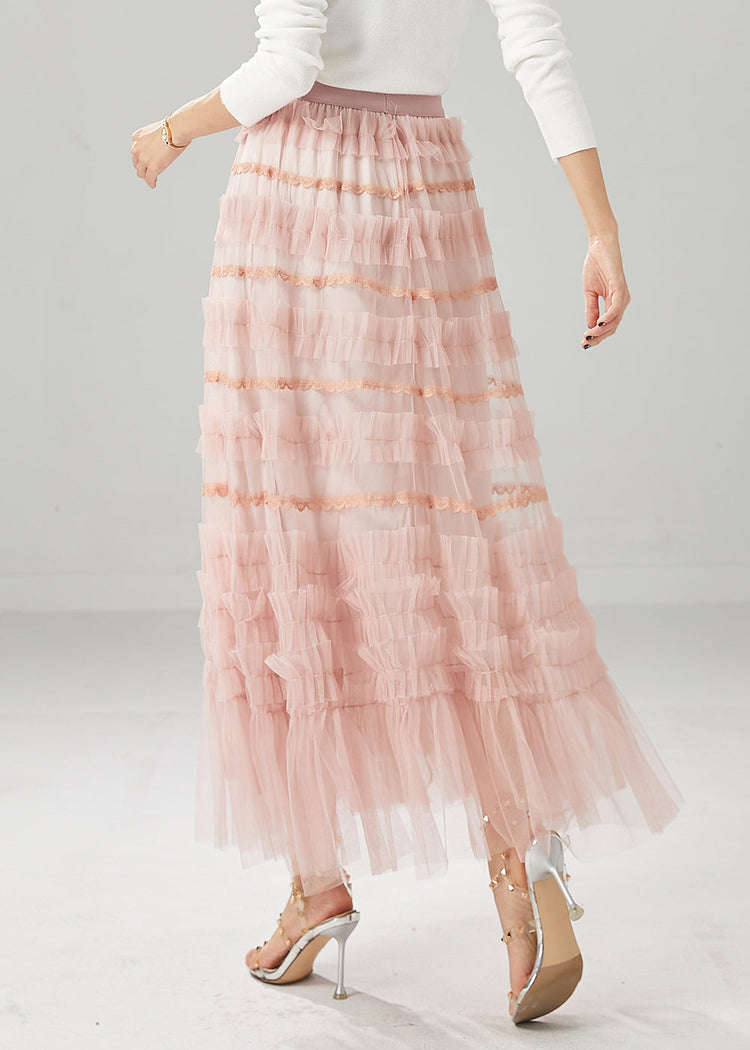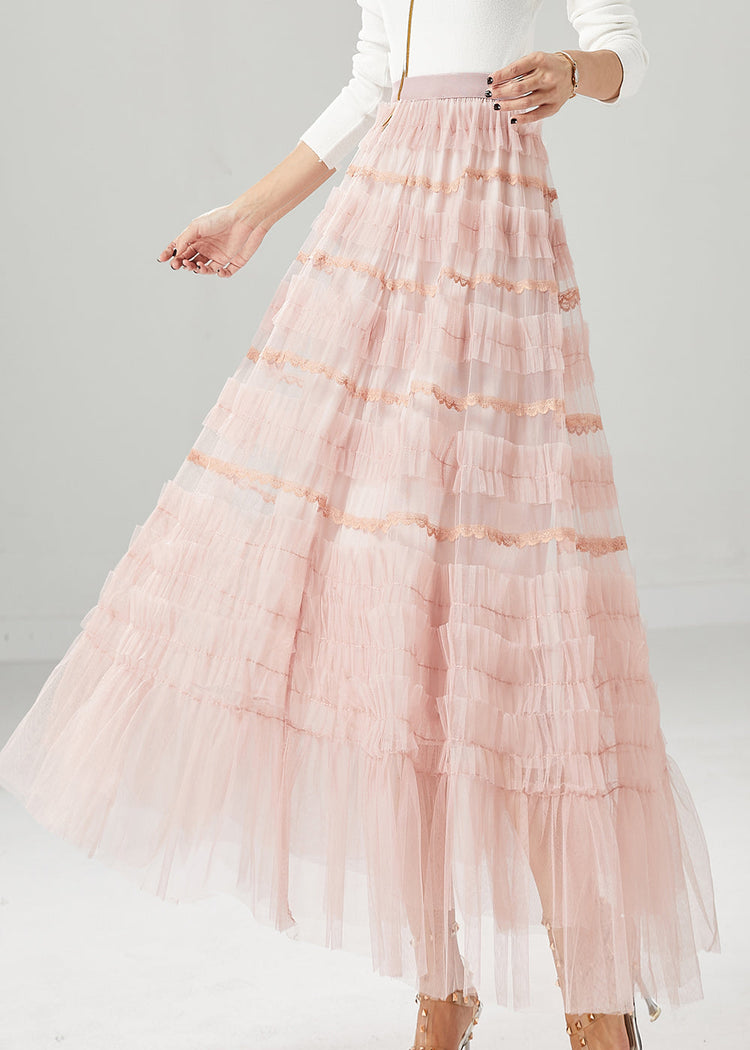French Pink Ruffled Exra Large Hem Tulle Skirt Fall