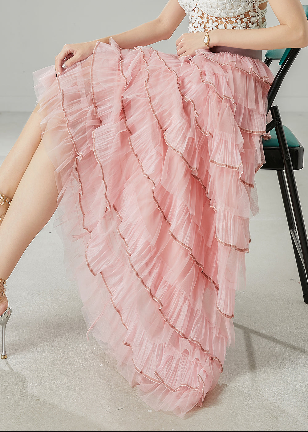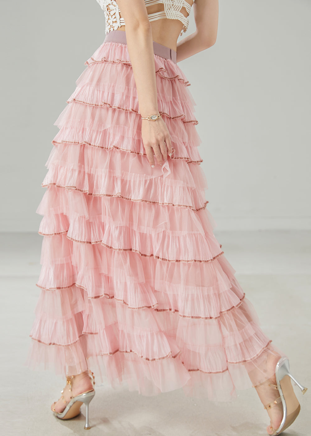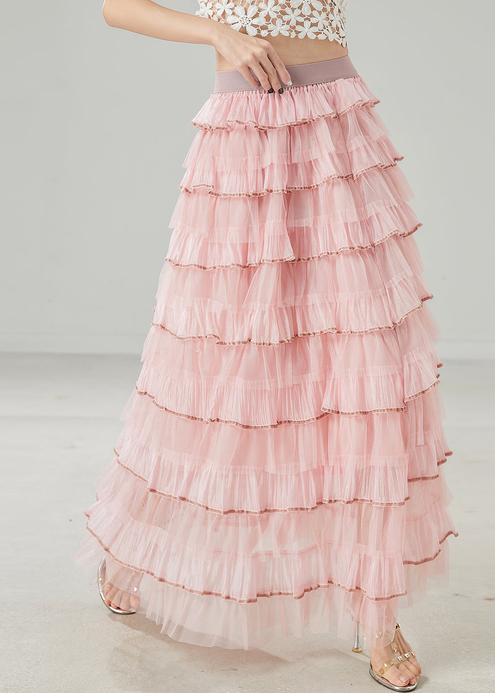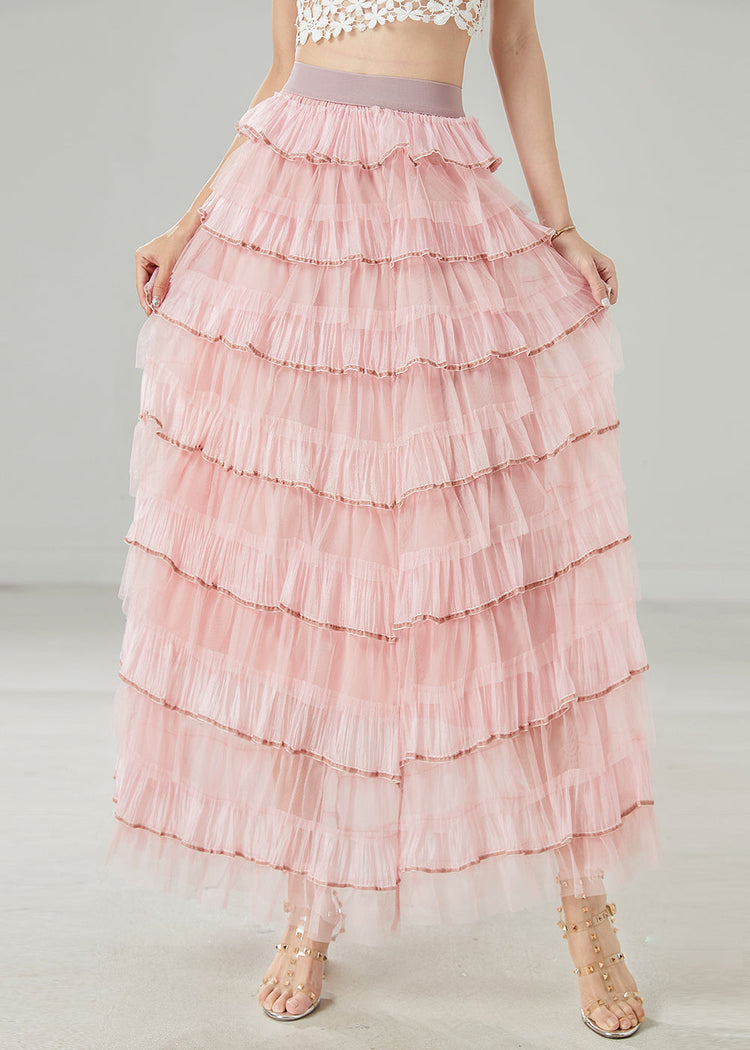 French Pink Ruffles Layered Tulle Vacation Skirt Spring