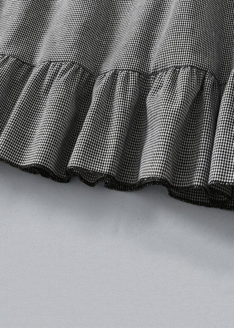 French Plaid Ruffled Pockets Cotton Dress Spring