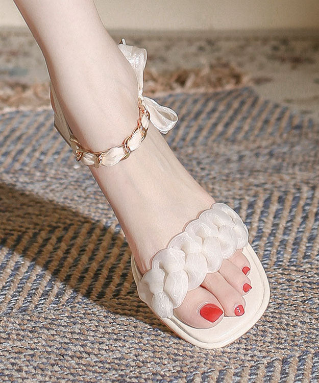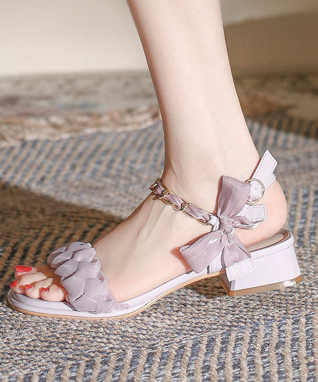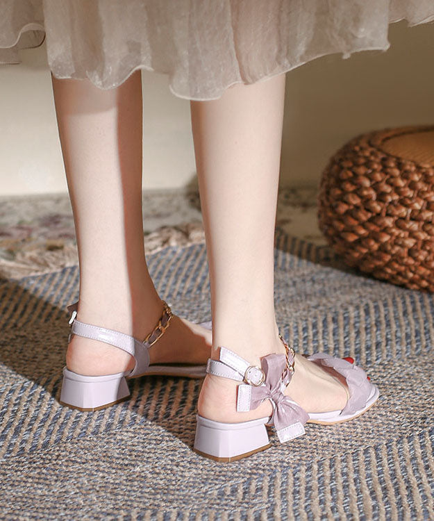 French Purple Bow Buckle Strap Splicing Chunky Sandals