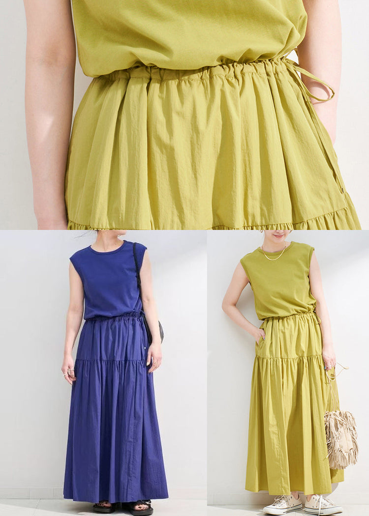 French Purple Cinched Patchwork Cotton Maxi Dress Sleeveless