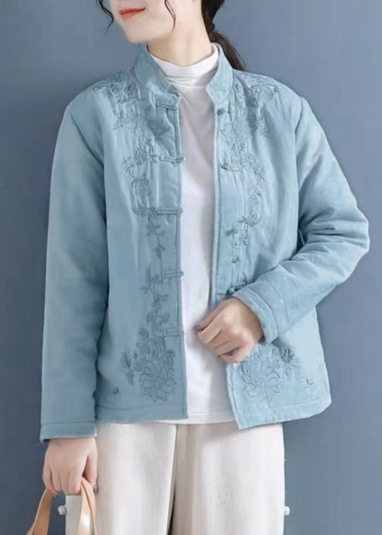 French Purple Embroidered Button Cotton Filled Coat Winter