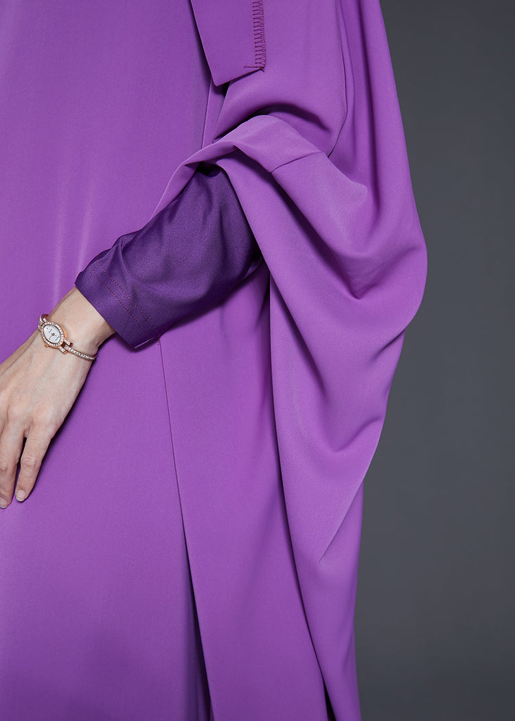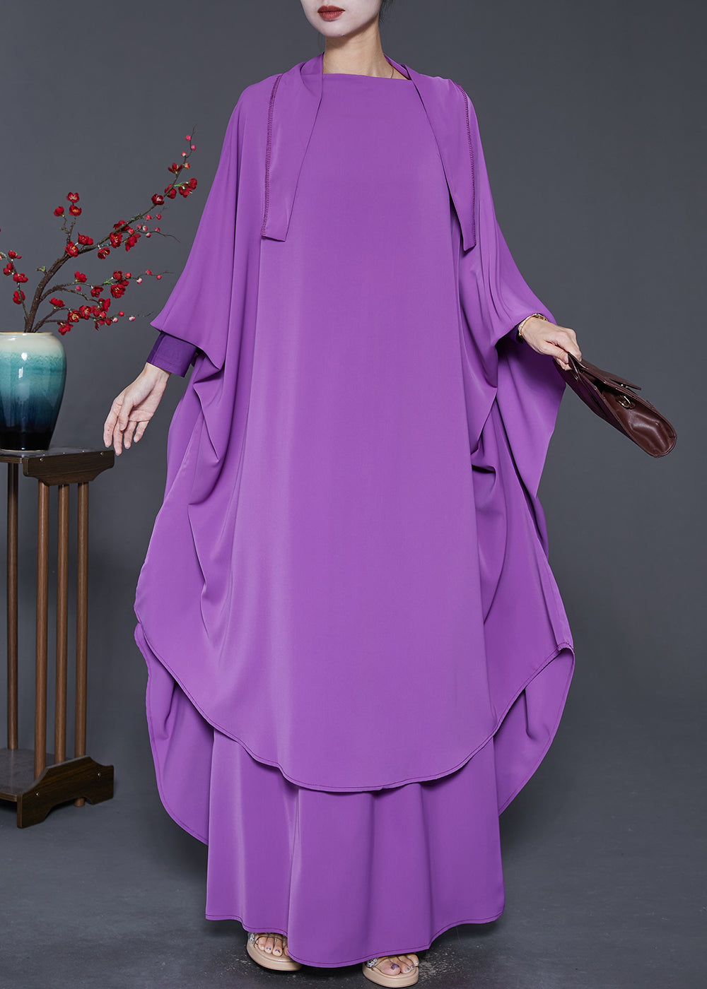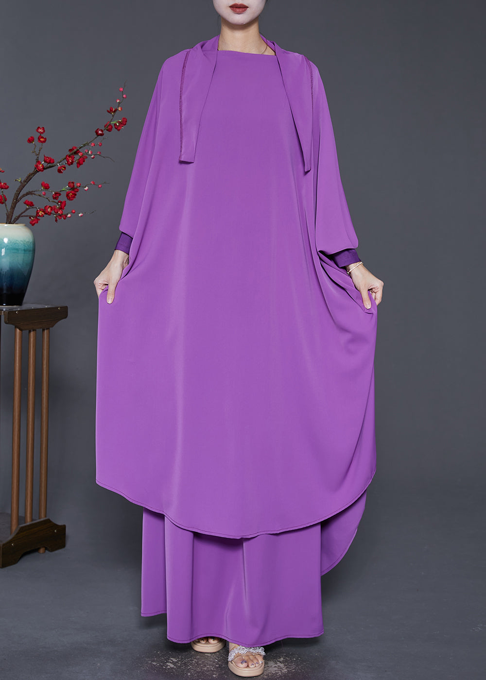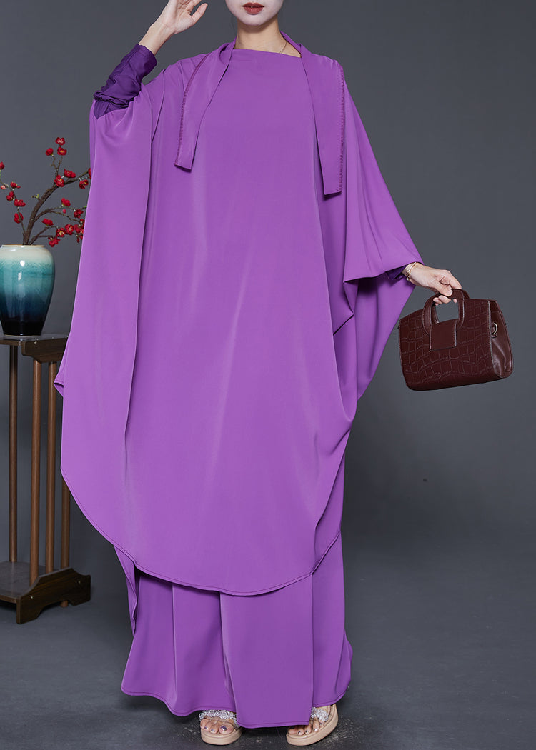 French Purple Oversized Draping Silk Two Piece Set Batwing Sleeve