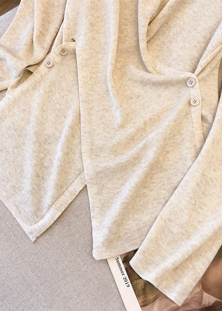 French Red O Neck Asymmetrical Design Knit Top Fall