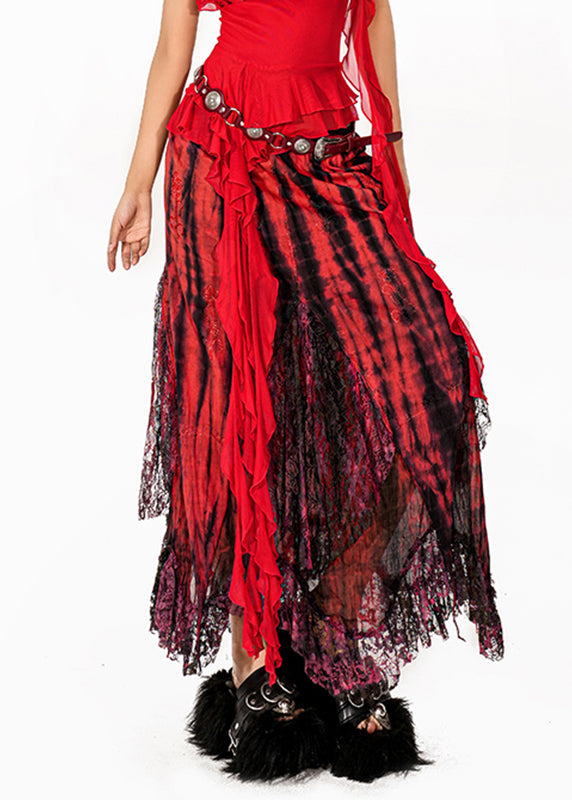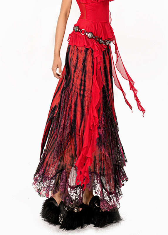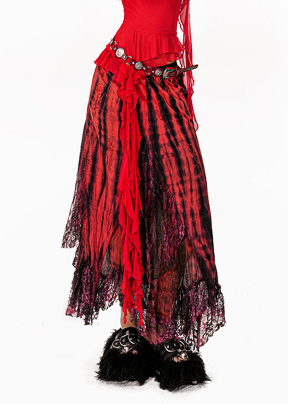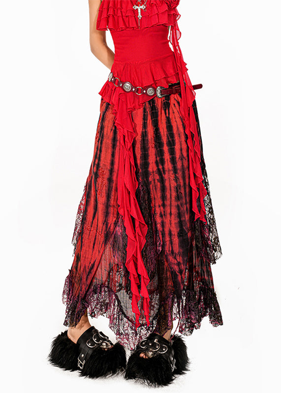 French Red Tie Dye Asymmetrical Patchwork A Line Skirts