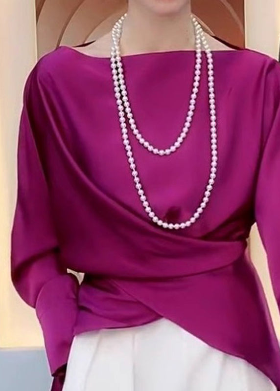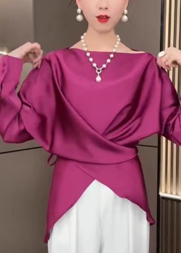 French Rose Slash Neck Asymmetrical Tie Waist Shirt Spring