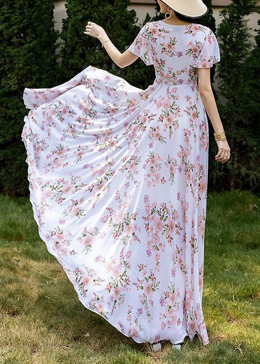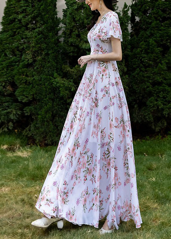 French Style Pink Square Collar Print Chiffon Dresses Summer