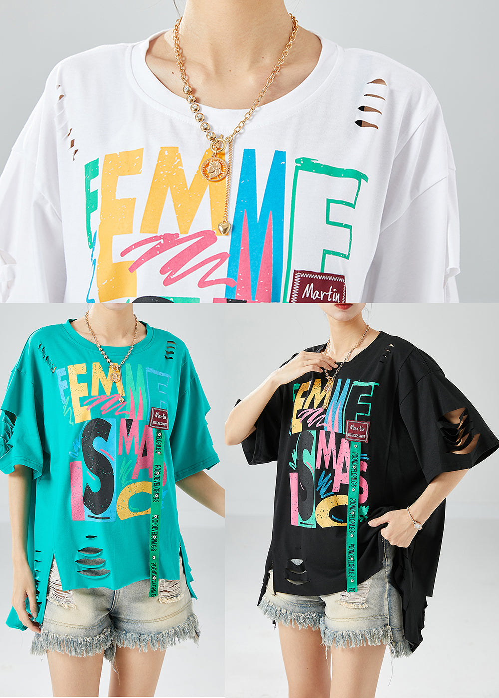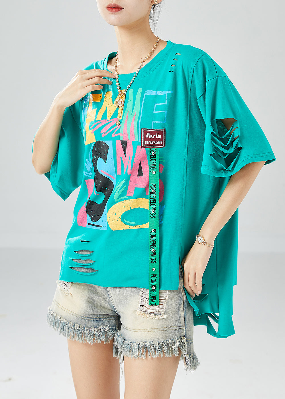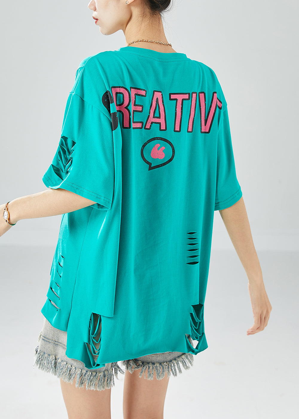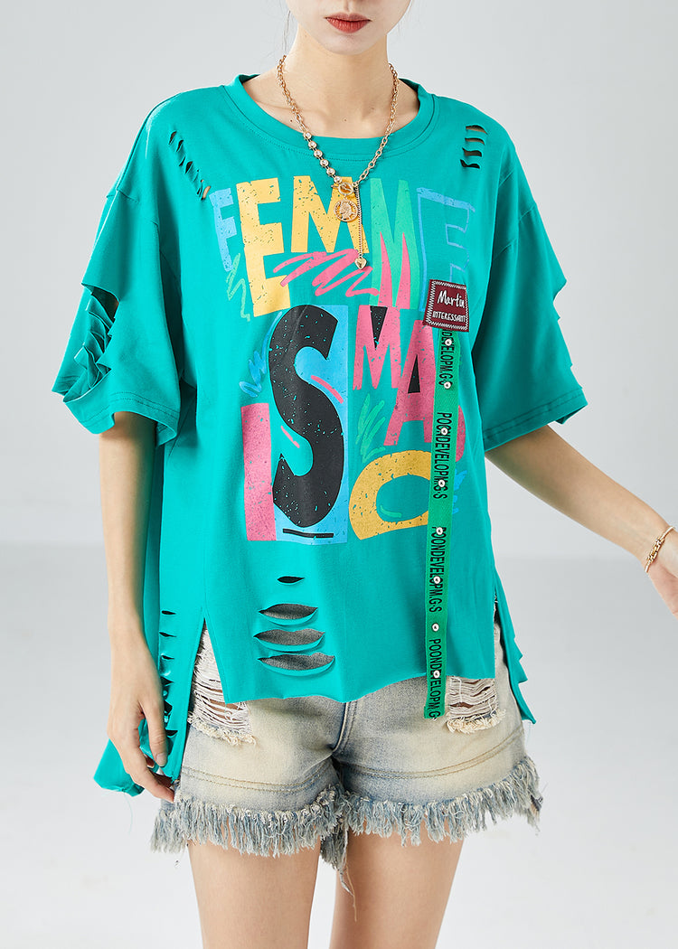 Green Original Design Cotton Ripped Tank Tops Oversized Summer