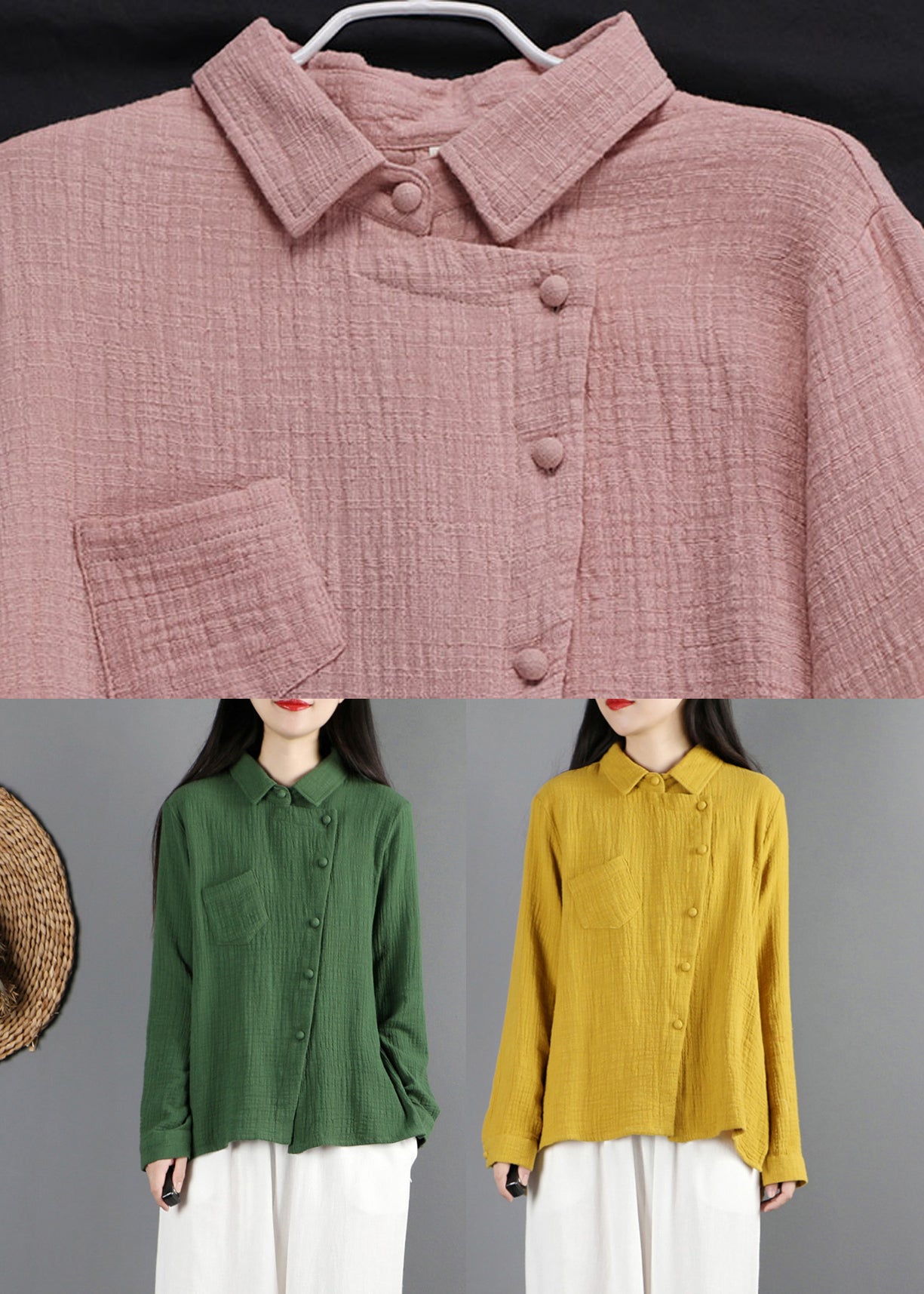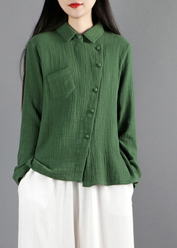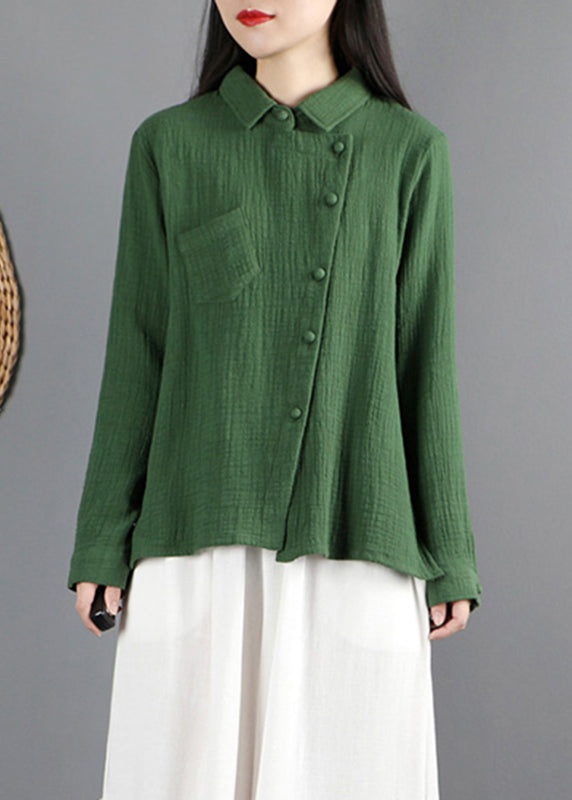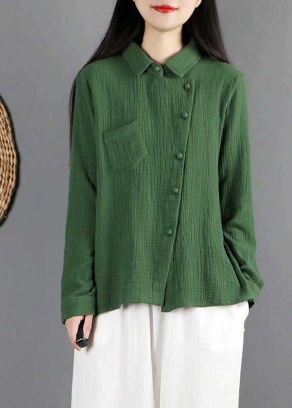 Green Peter Pan Collar Pockets Tops Long Sleeve