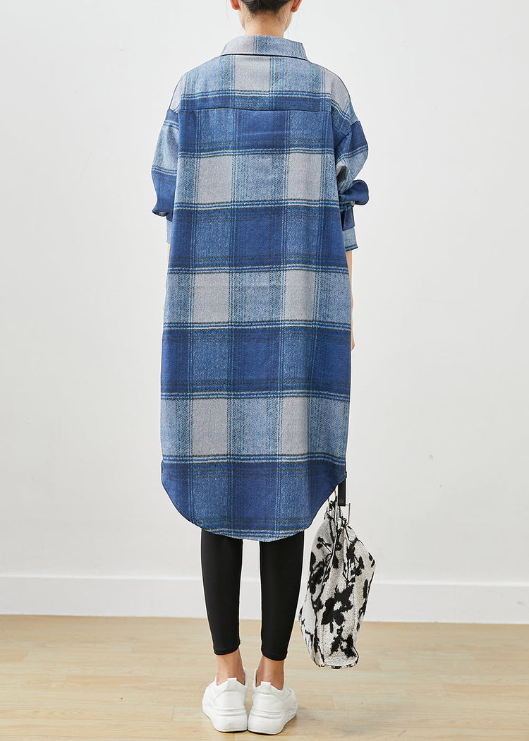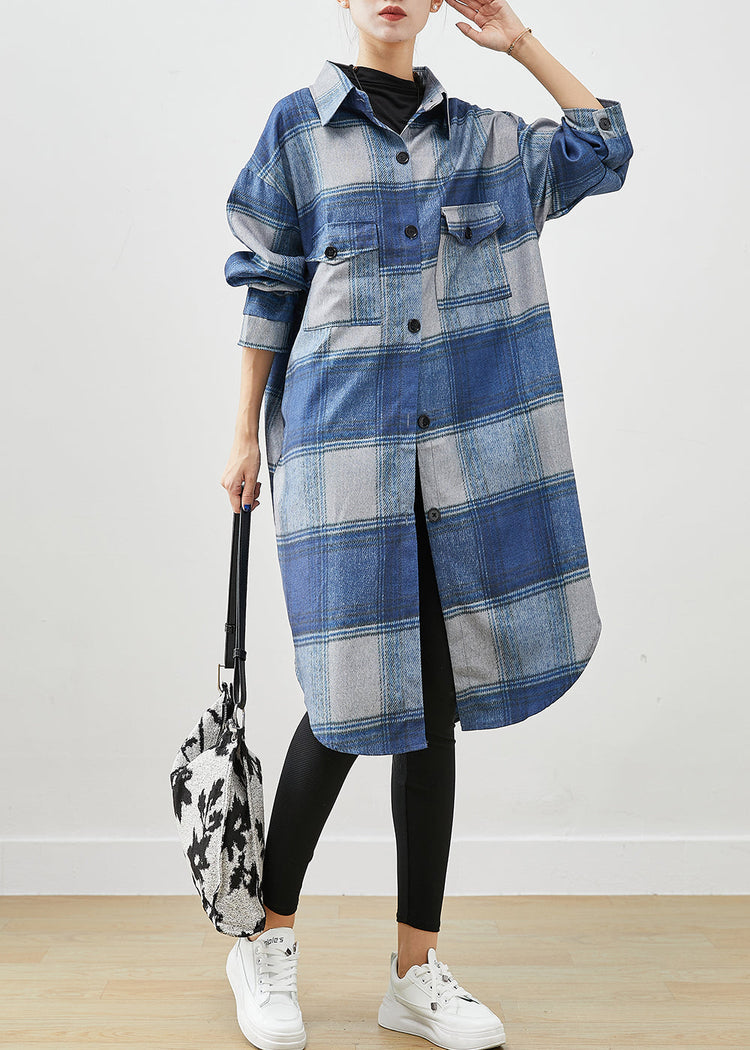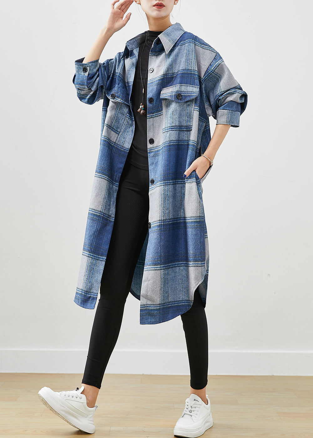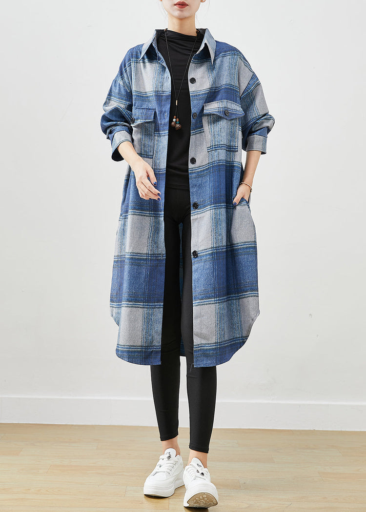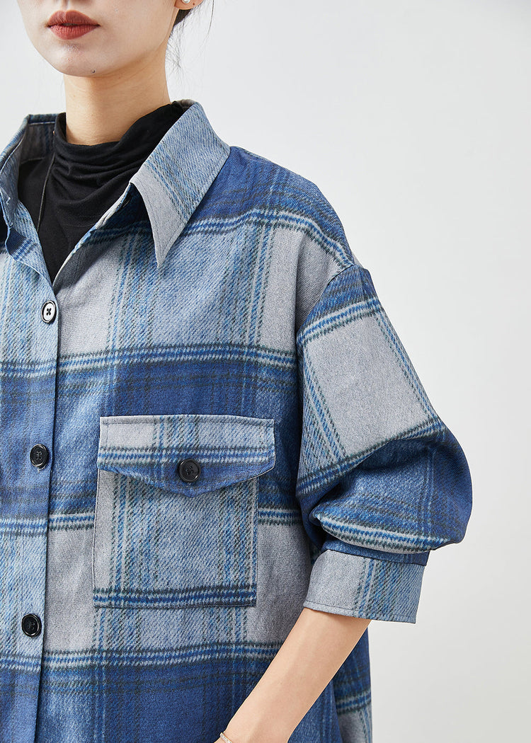 Handmade Blue Plaid Woolen Shirt Trench Coats Fall