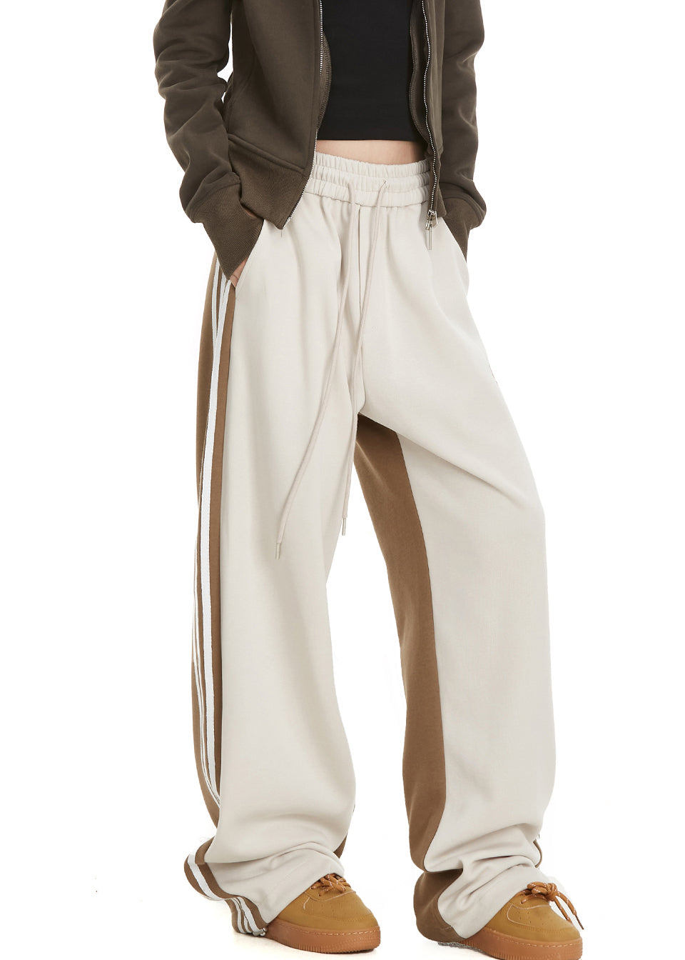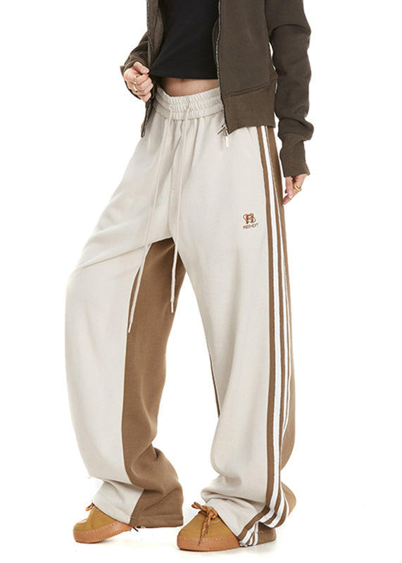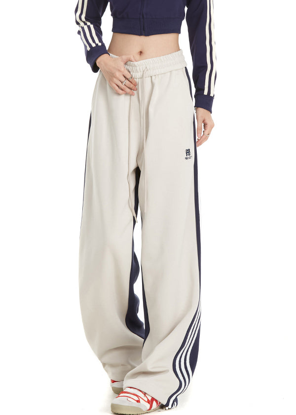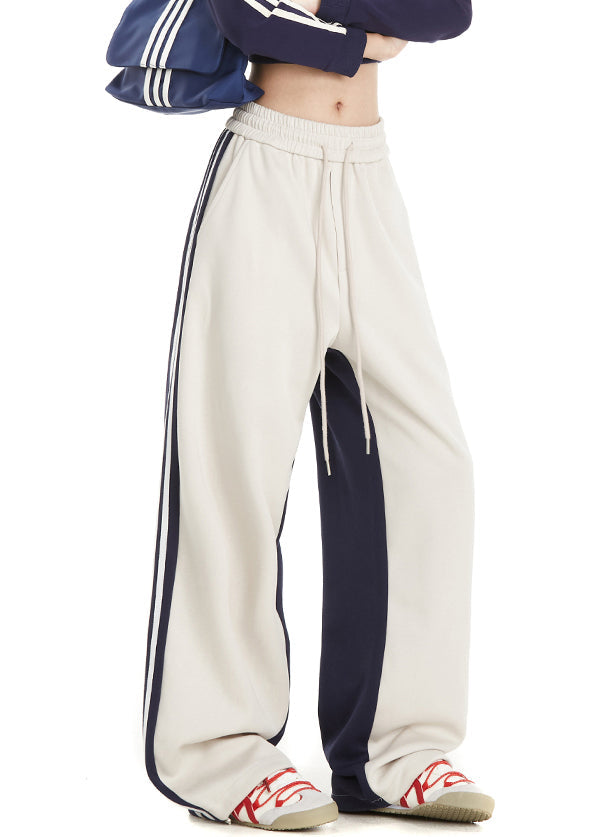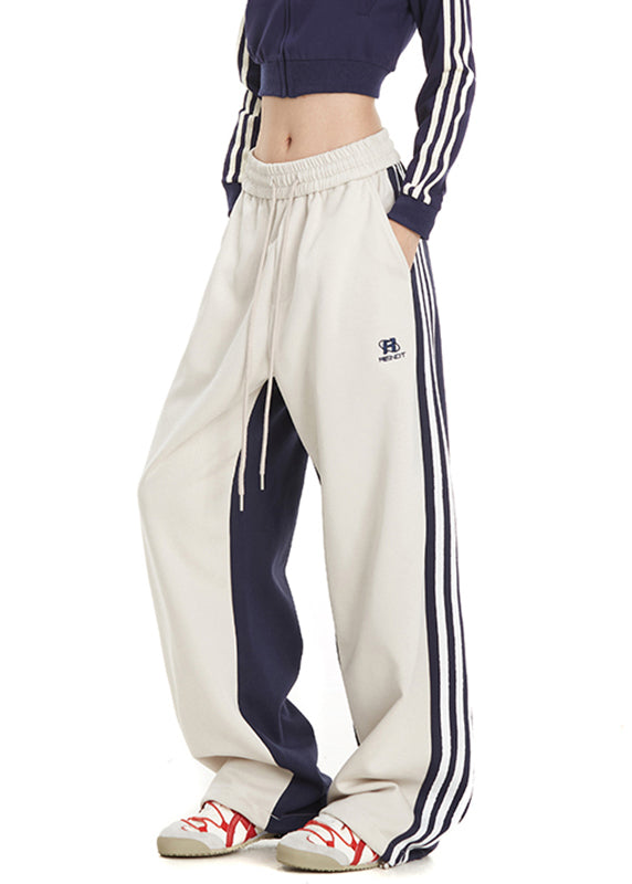 Handmade Blue Pockets Striped Patchwork Straight Pants Spring