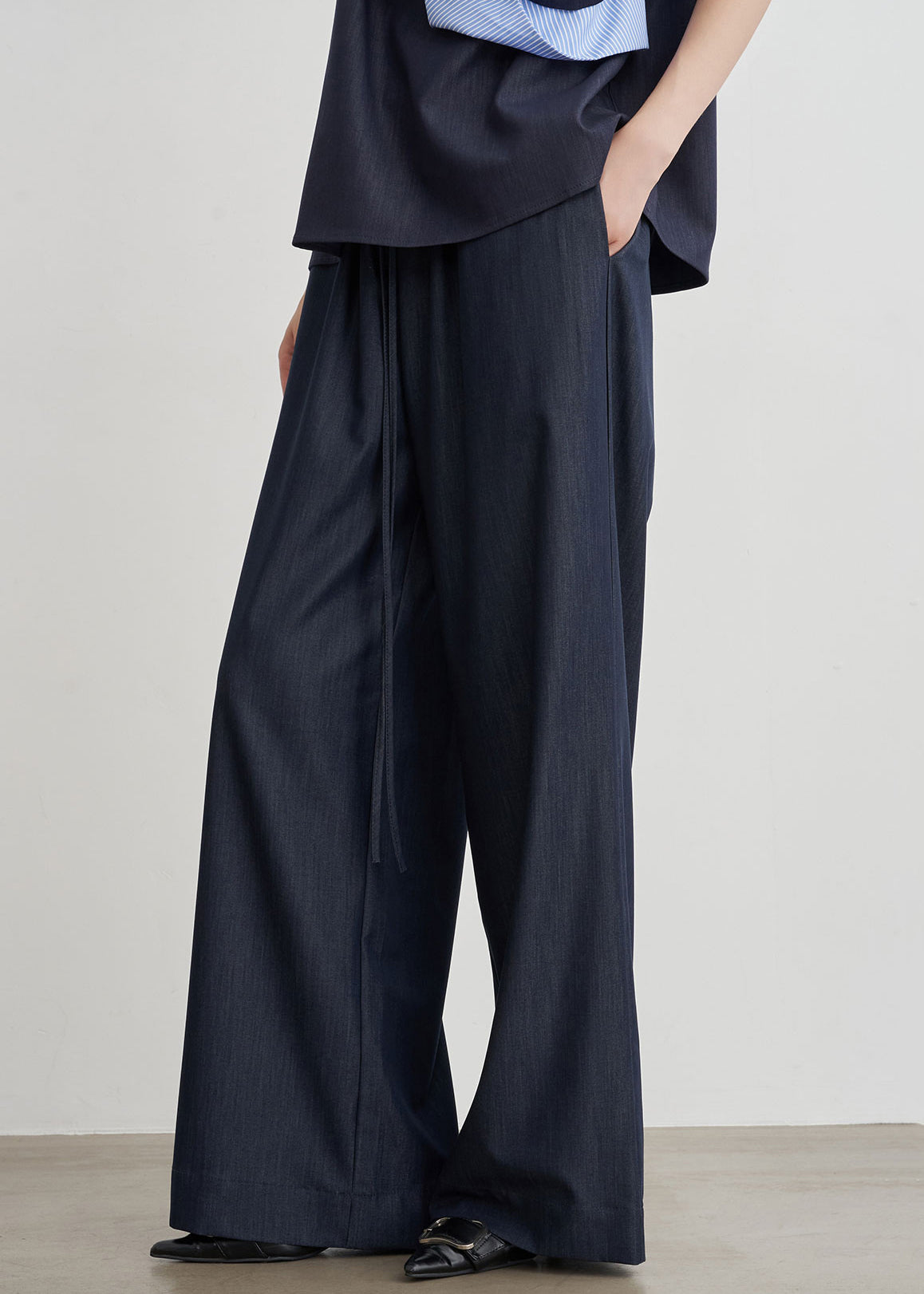 French Navy Print Pockets Oversized Cotton Wide Leg Pants Summer