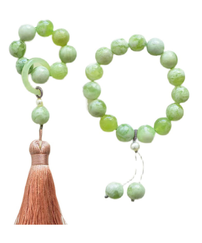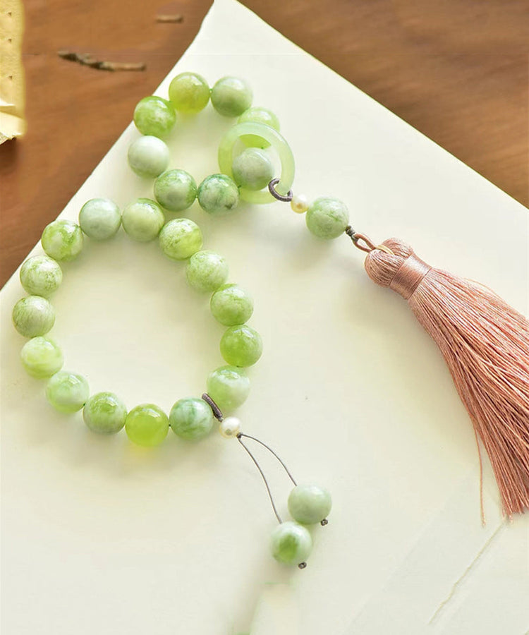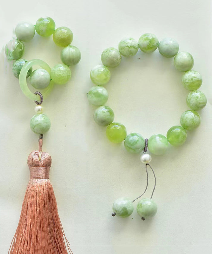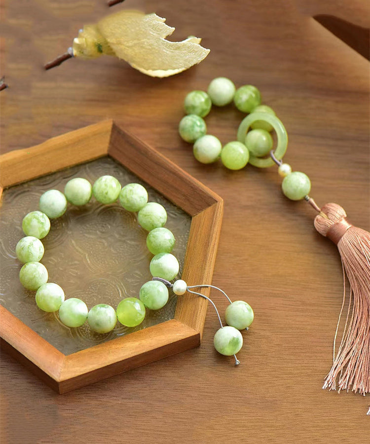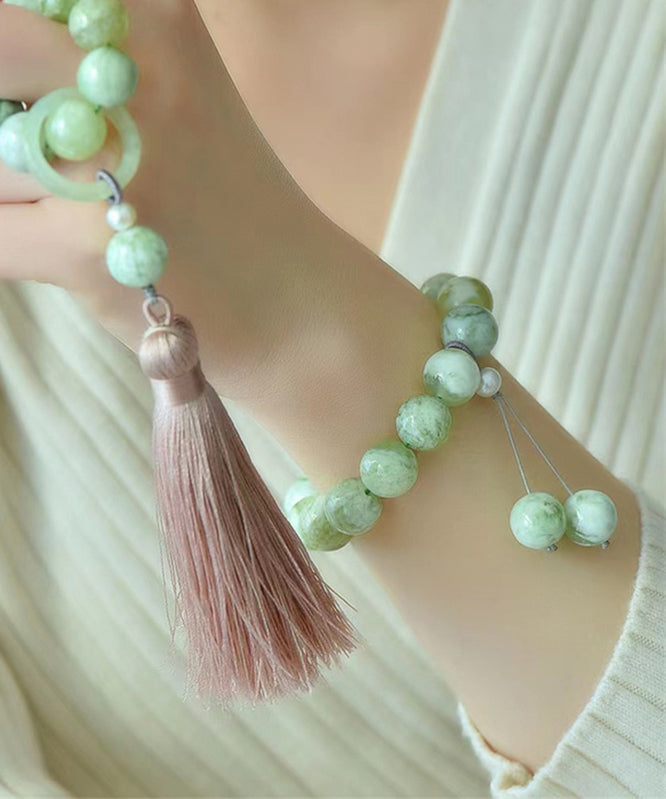 Modern Light Green Hand Woven Gem Stone Beading Tassel Charm Bracelet