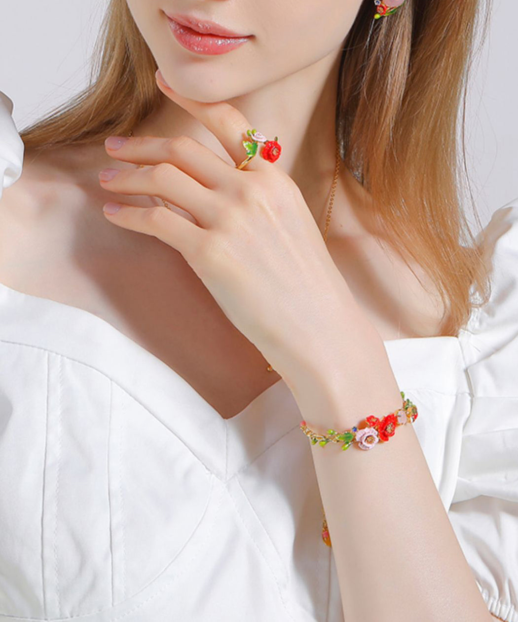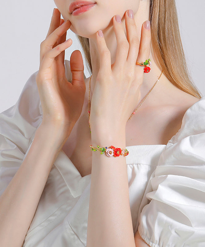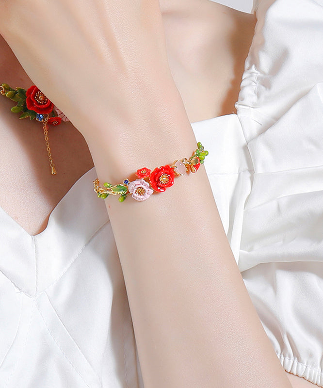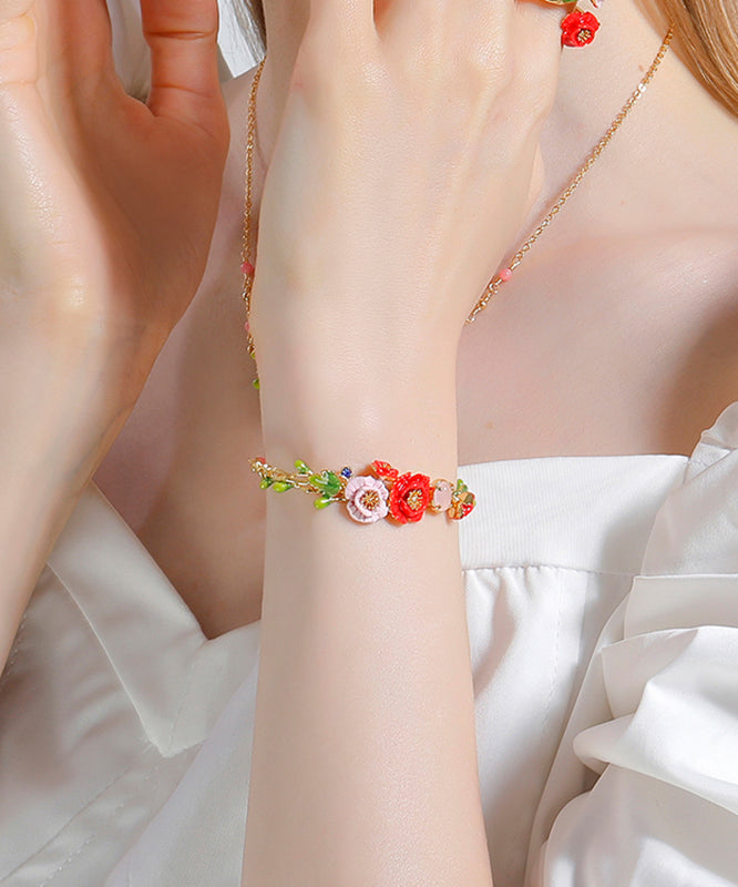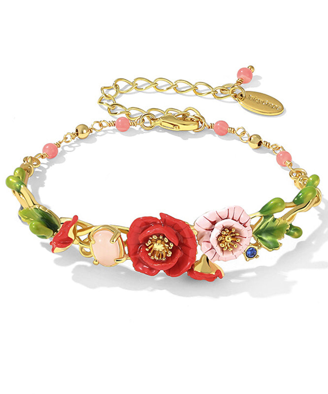 Original Design Gold Sterling Silver Overgild Enamel Floral Tassel Charm Bracelet