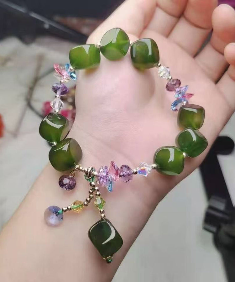 Original Design Red Hand Woven Crystal Agate Tassel Charm Bracelet