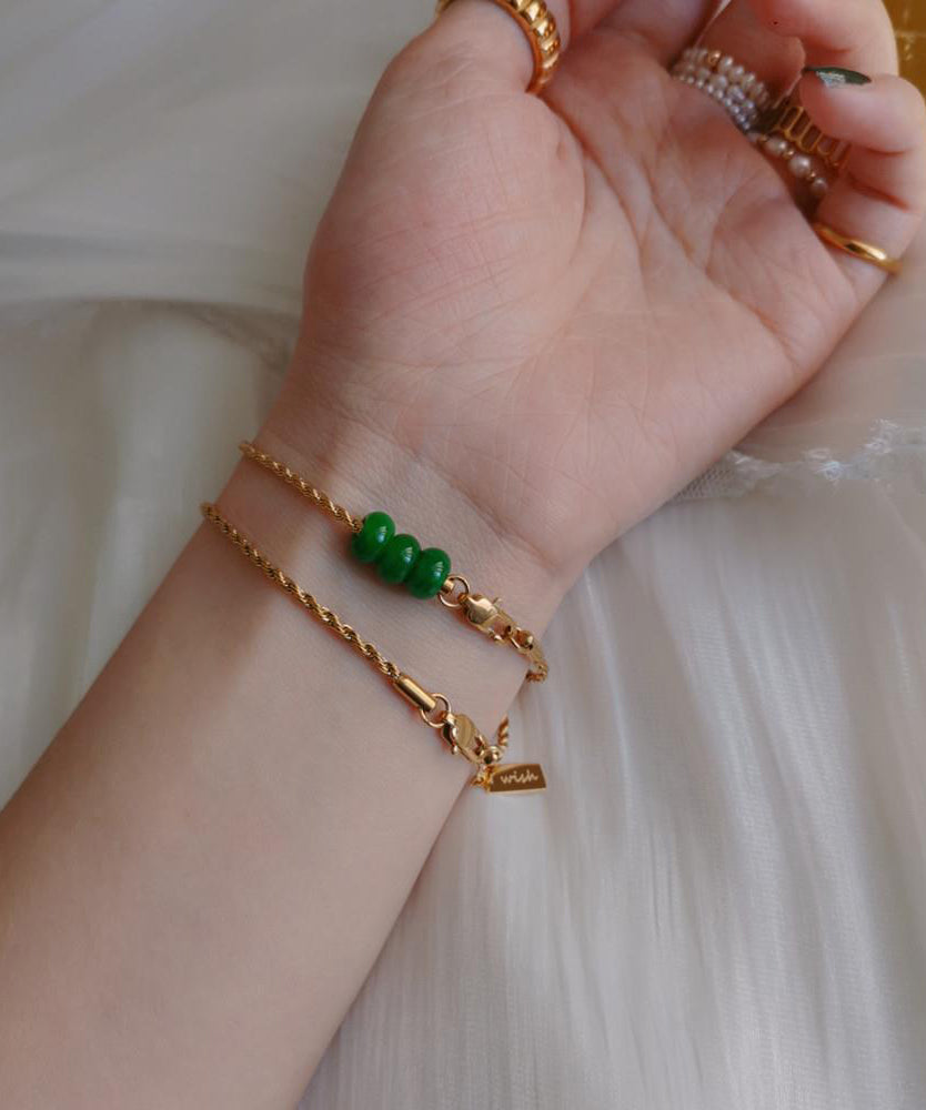 Fashion Green Crystal Jade Bamboo Joint Tassel Charm Bracelet