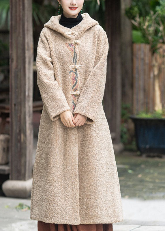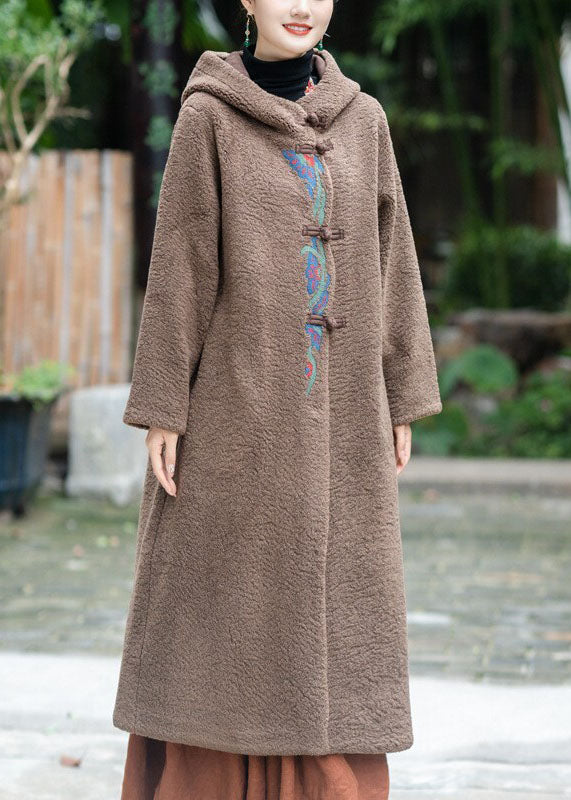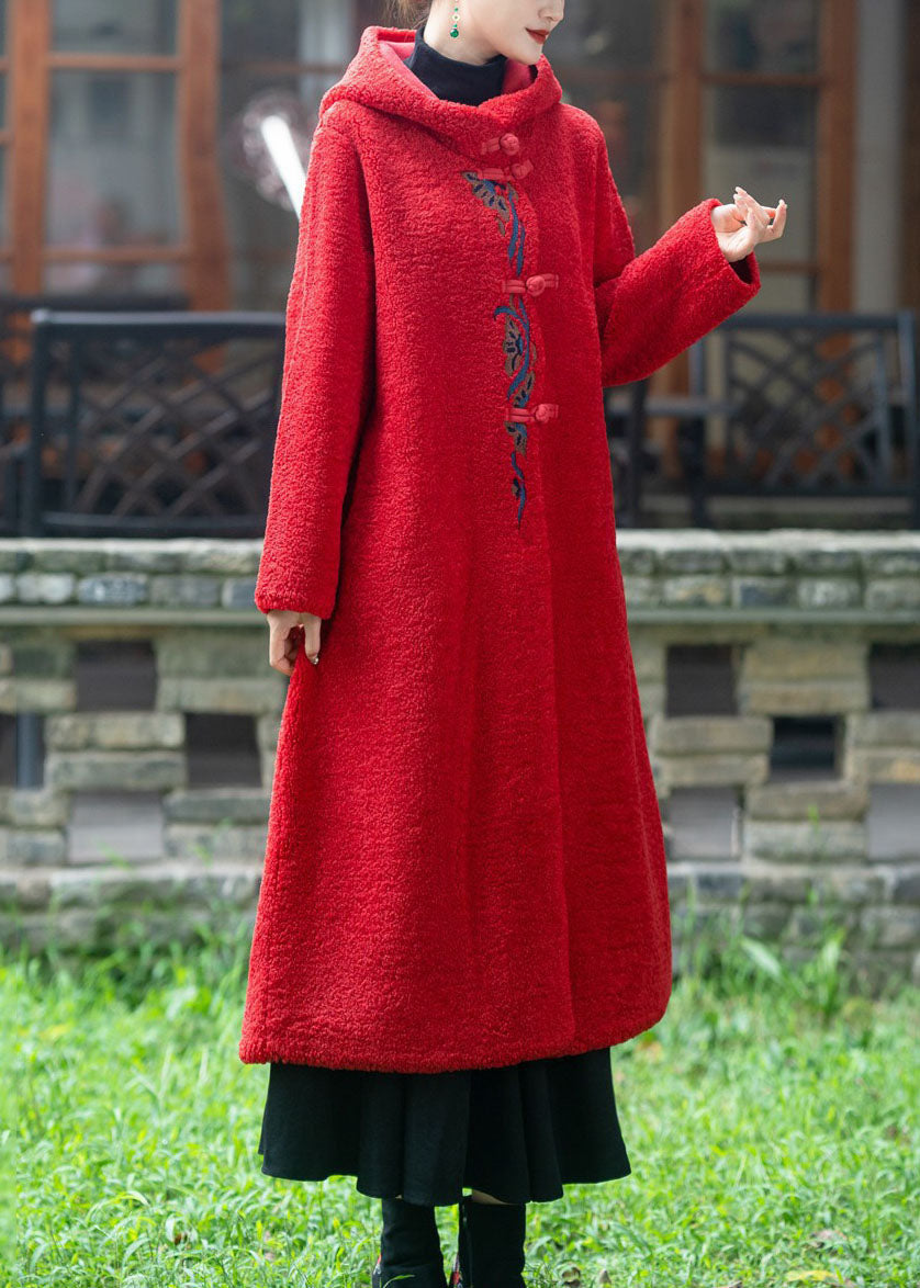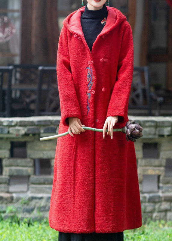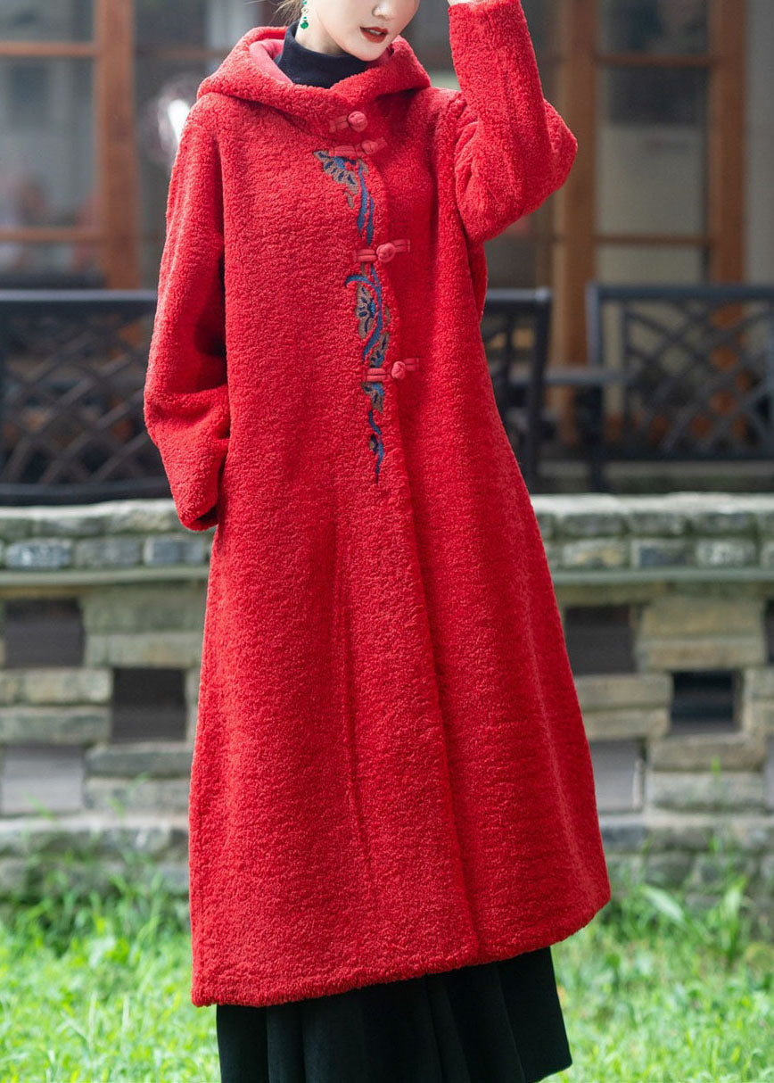Boutique Red Hooded Embroideried Thick Teddy Faux Fur Lengthen Coats Winter