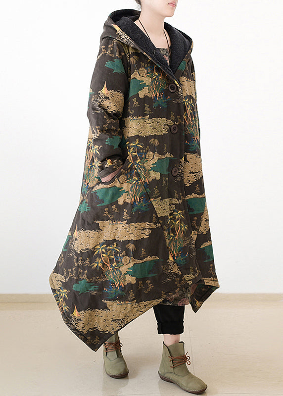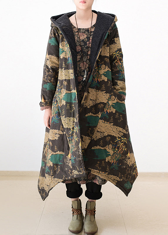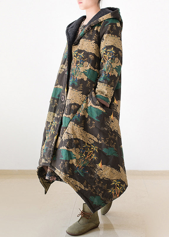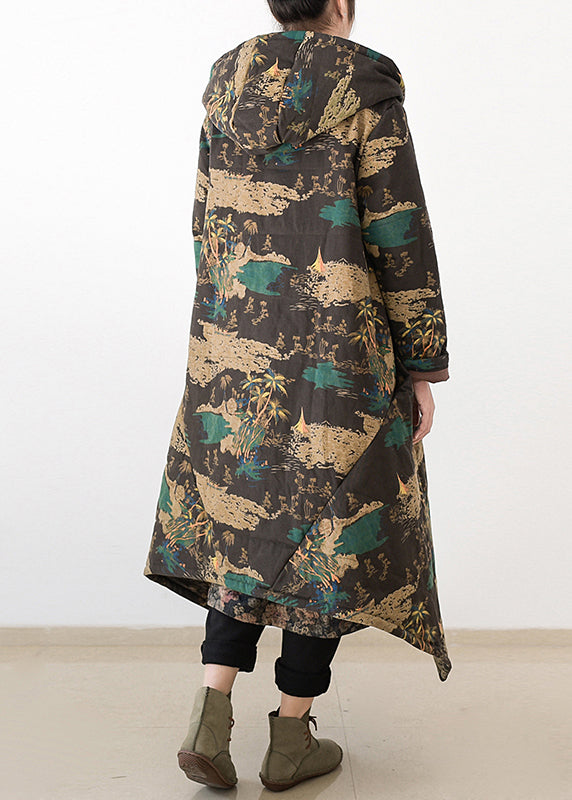 Casual Yellow Print Warm Thick Hooded Long Parka Coats Winter