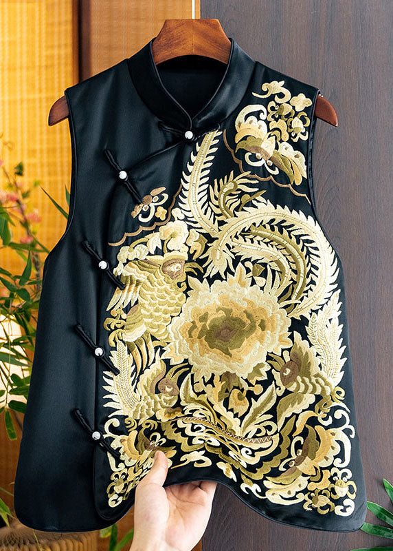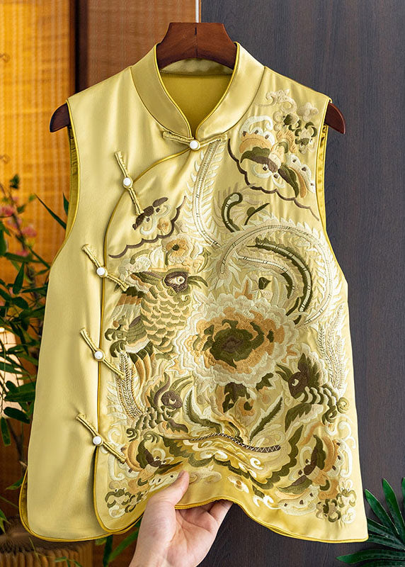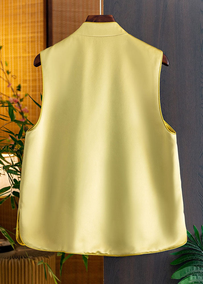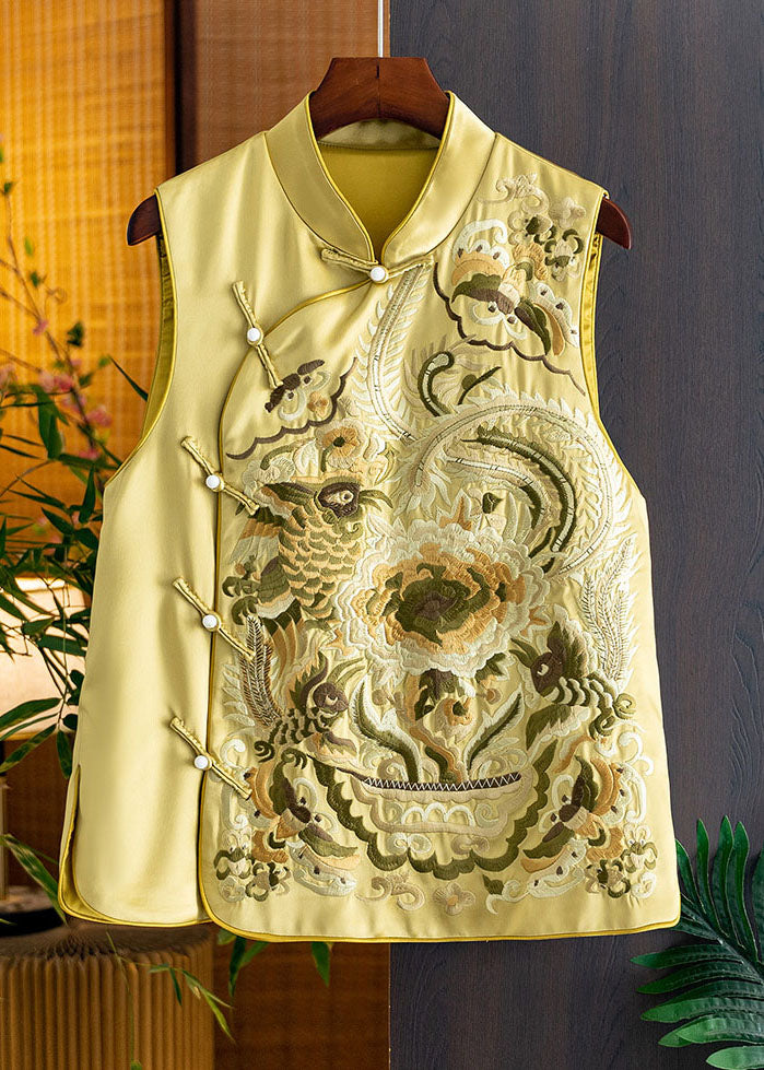 Chic Yellow Stand Collar Embroideried Side Open Silk Waistcoat Fall