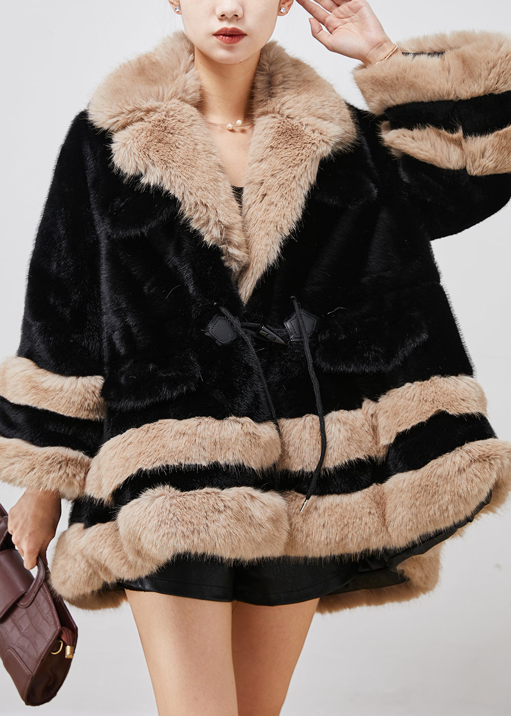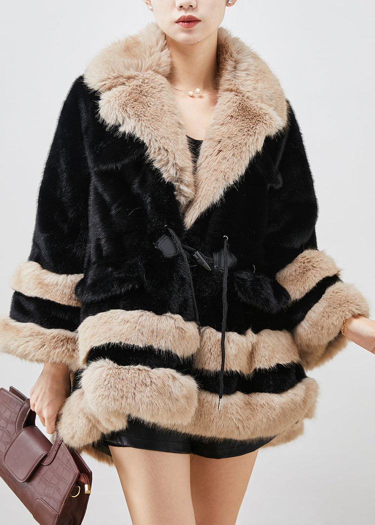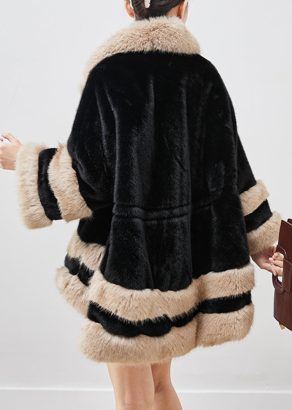 Classy Black Oversized Patchwork Faux Fur Trench Winter