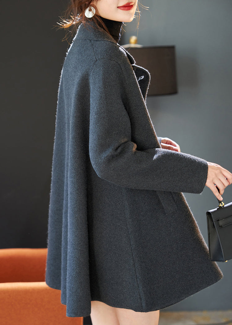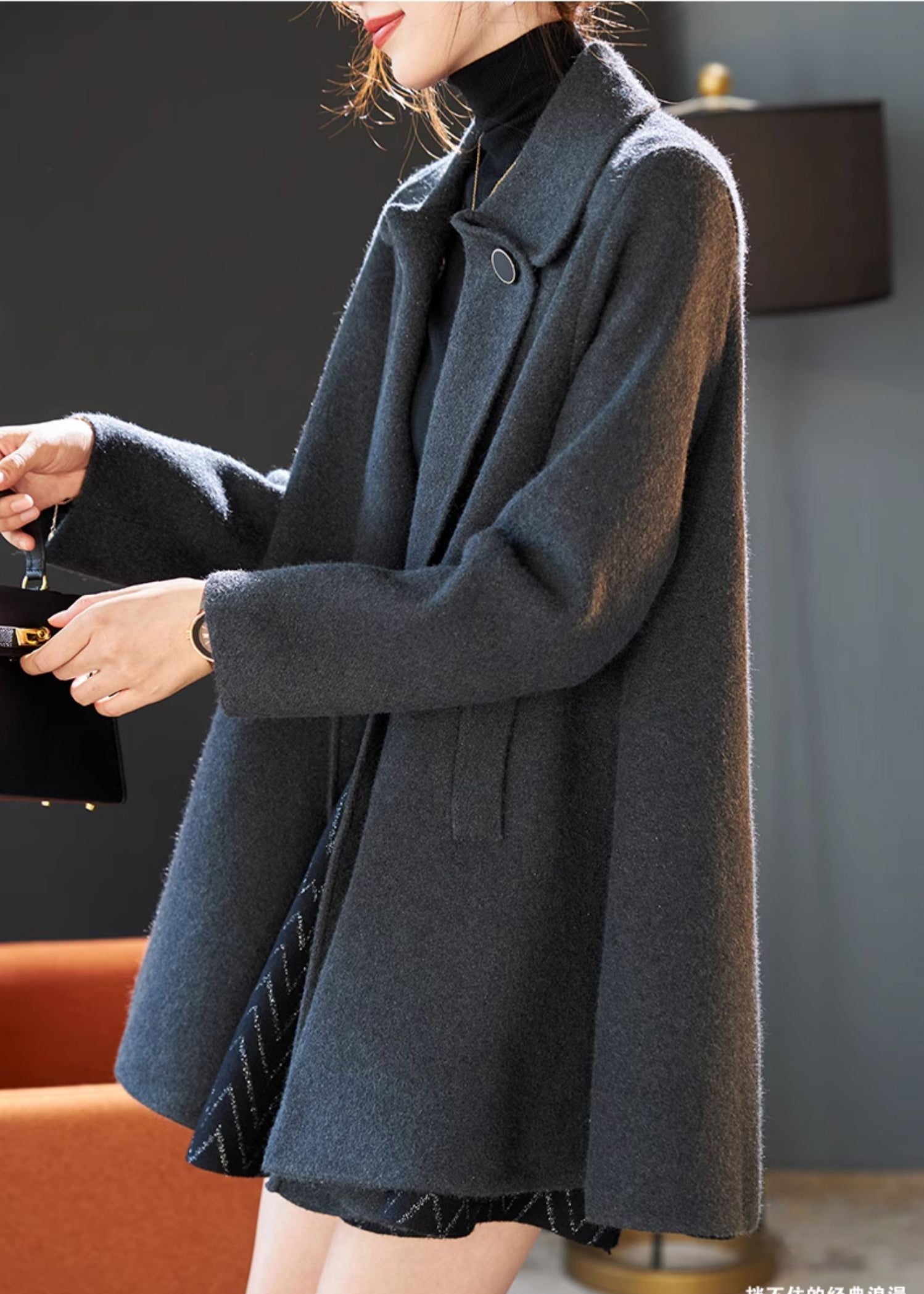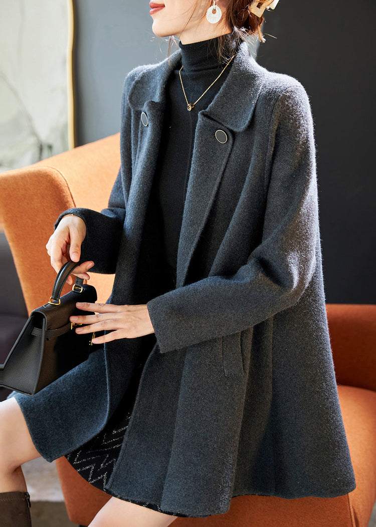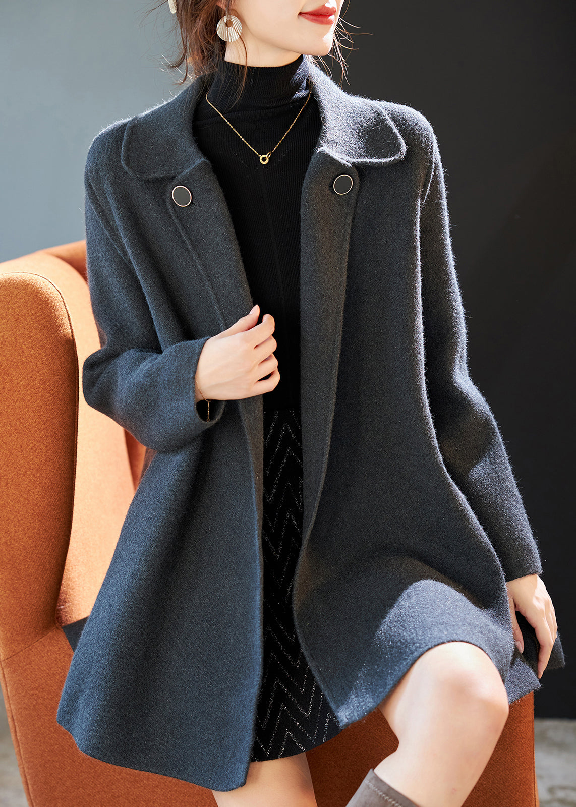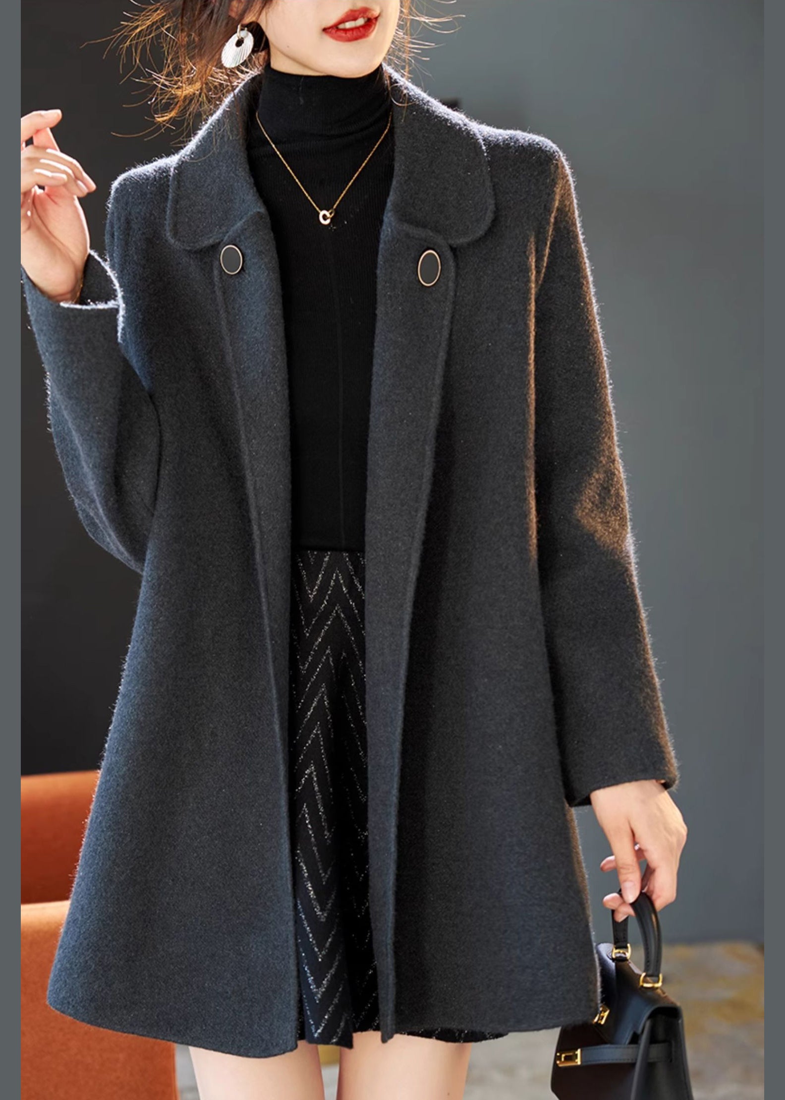 Fine Grey Peter Pan Collar Pockets Woolen Trench Spring
